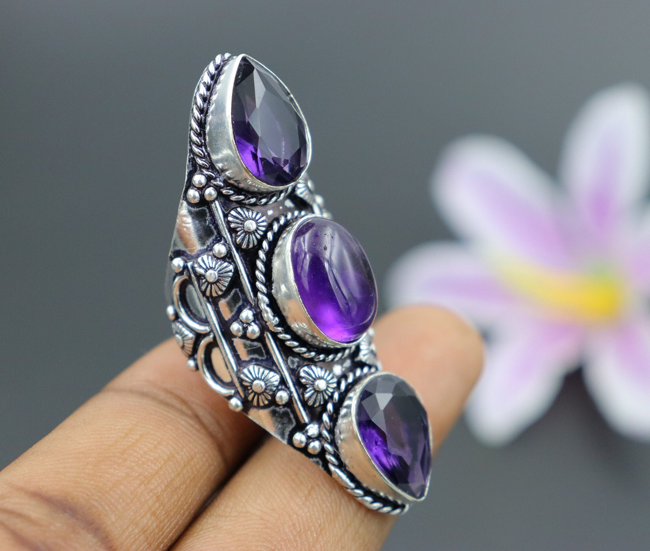 Boho Amethyst Gemstone Ring\ Natural Amethyst Gemstone Ring\ Natura...