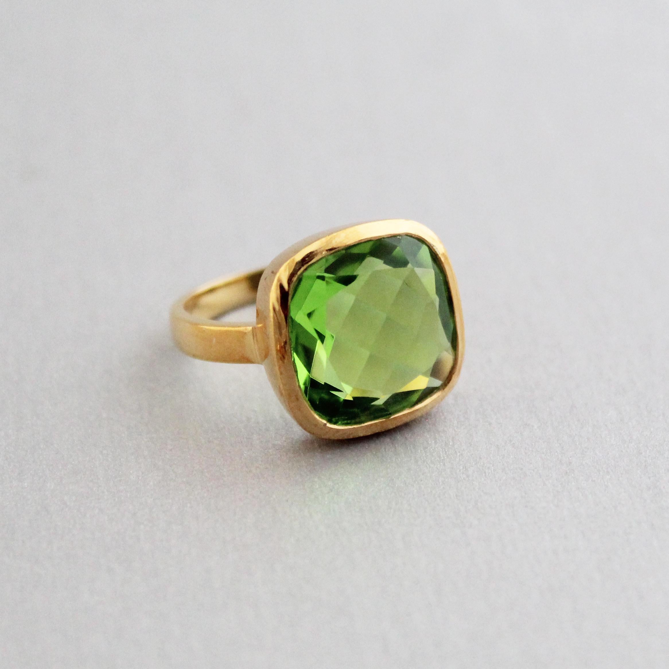 Beautiful handcrafted ring Stone Information: Green Amethyst Quartz - Color: Green Cut: Cushion Size...