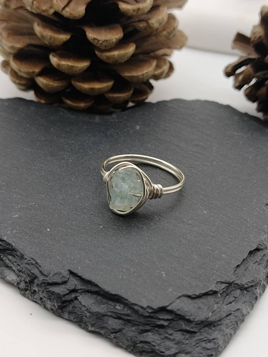 Raw Aquamarine Ring The stone will measure approx 6-9mm. This gemstones is wrapped in sterling silve...