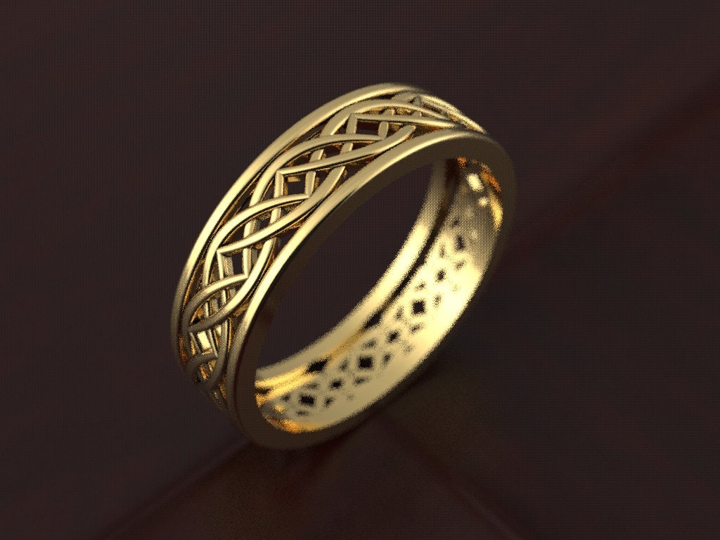 Gold Celtic Band, Mens Celtic Ring, Celtic Wedding Band, Womans Orn...
