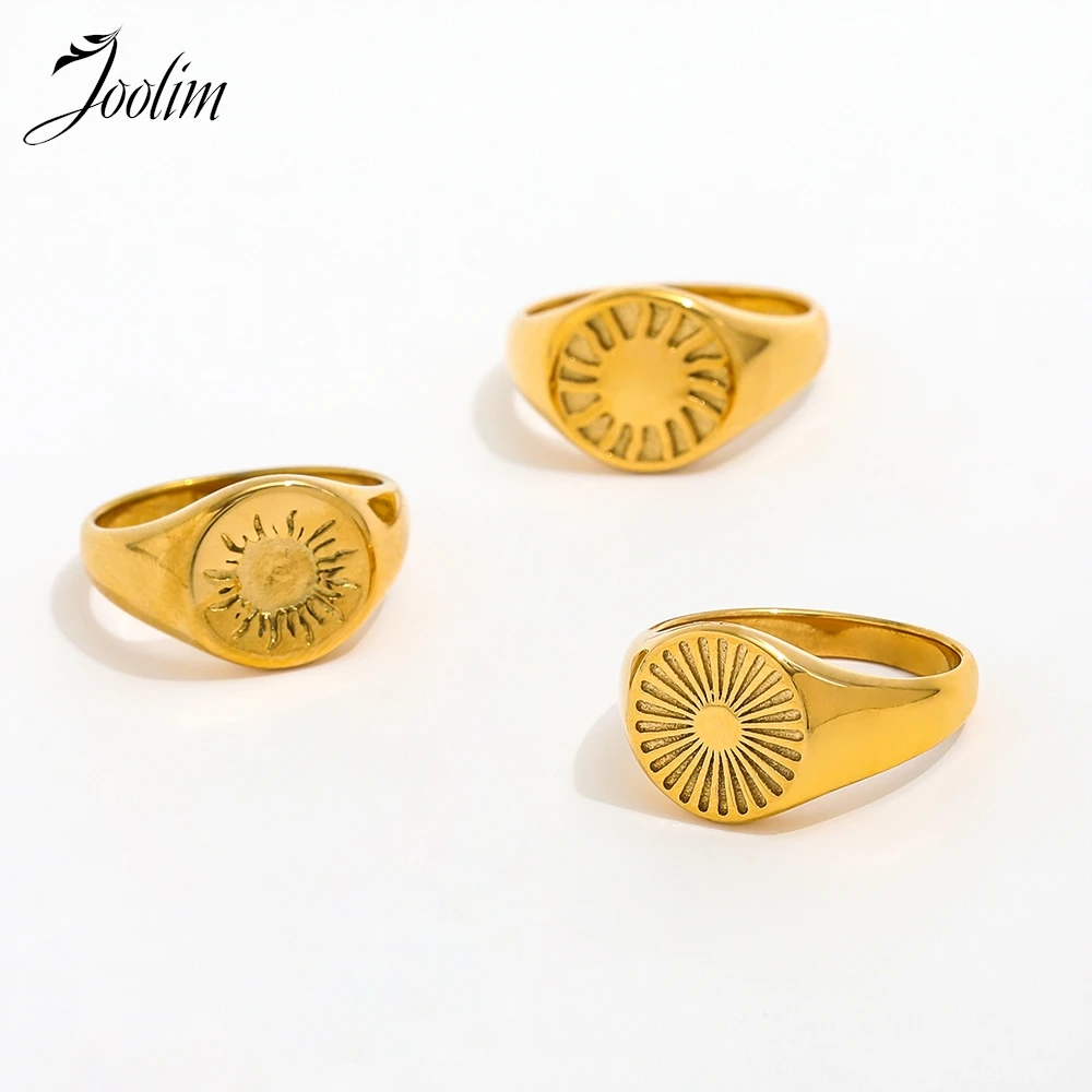 Joolim High End PVD Waterproof Fashion Fashion Dainty Stamp Sunshine Burst Ring for Women Stainless ...