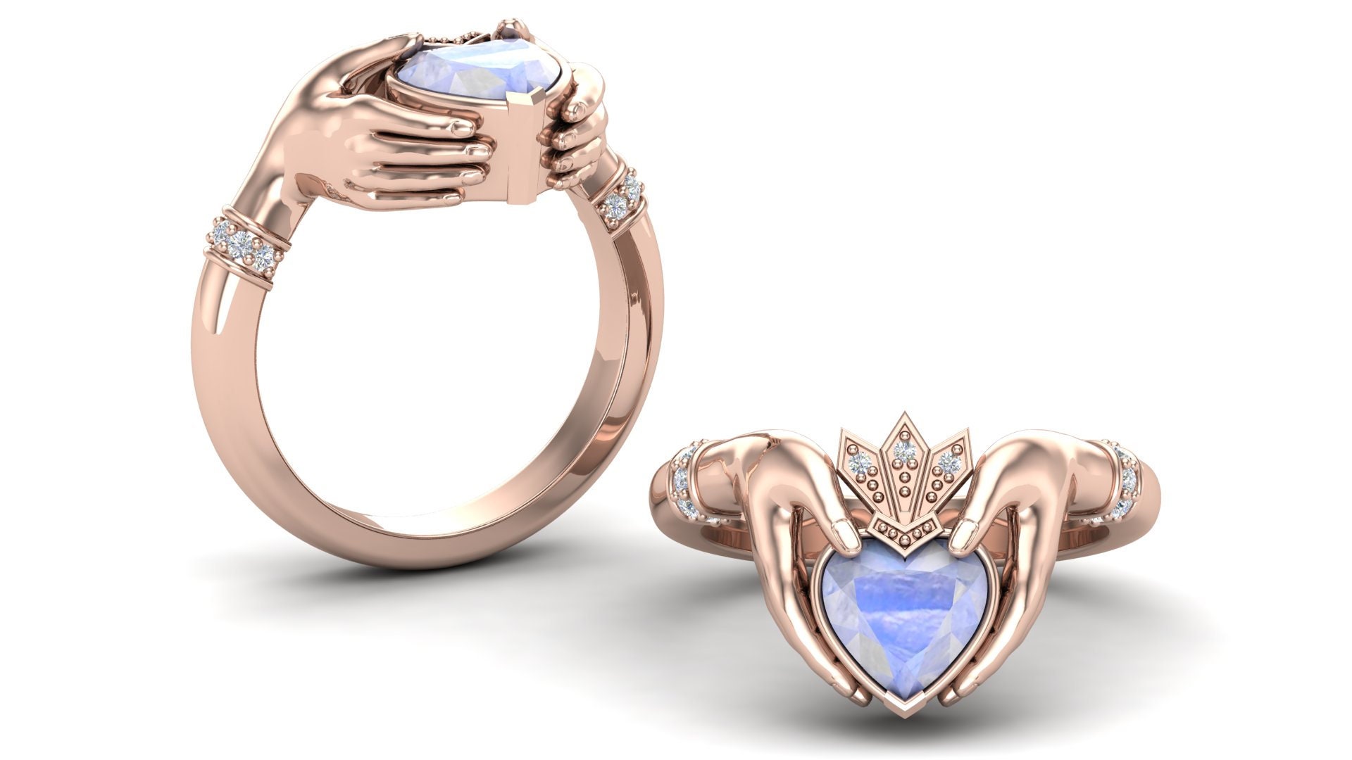 14k Gold Moonstone Claddagh Ring Rainbow Moonstone Claddagh Engagem...