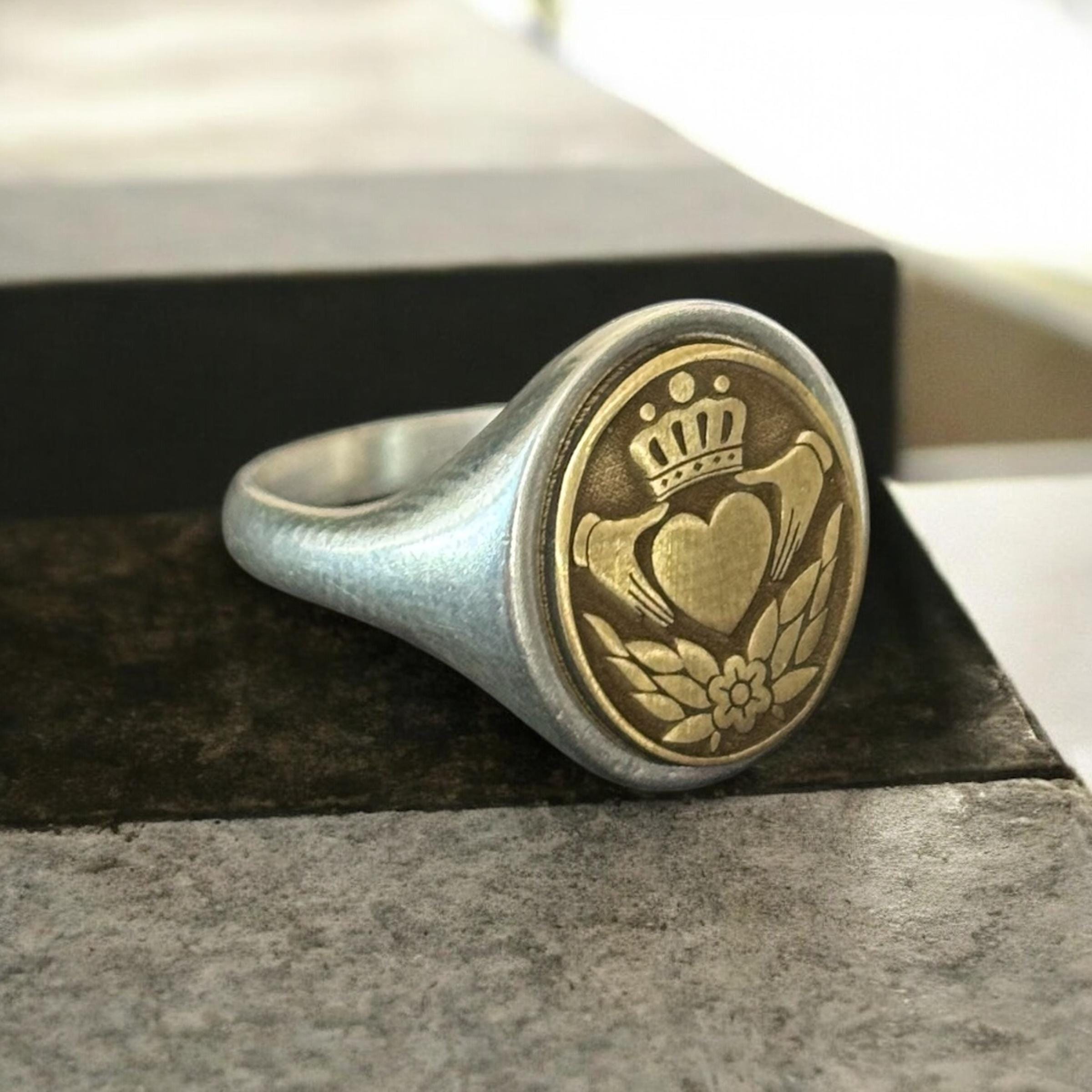 Claddagh Signet Ring, Celtic Claddagh Pinky Ring, Personalized Iris...