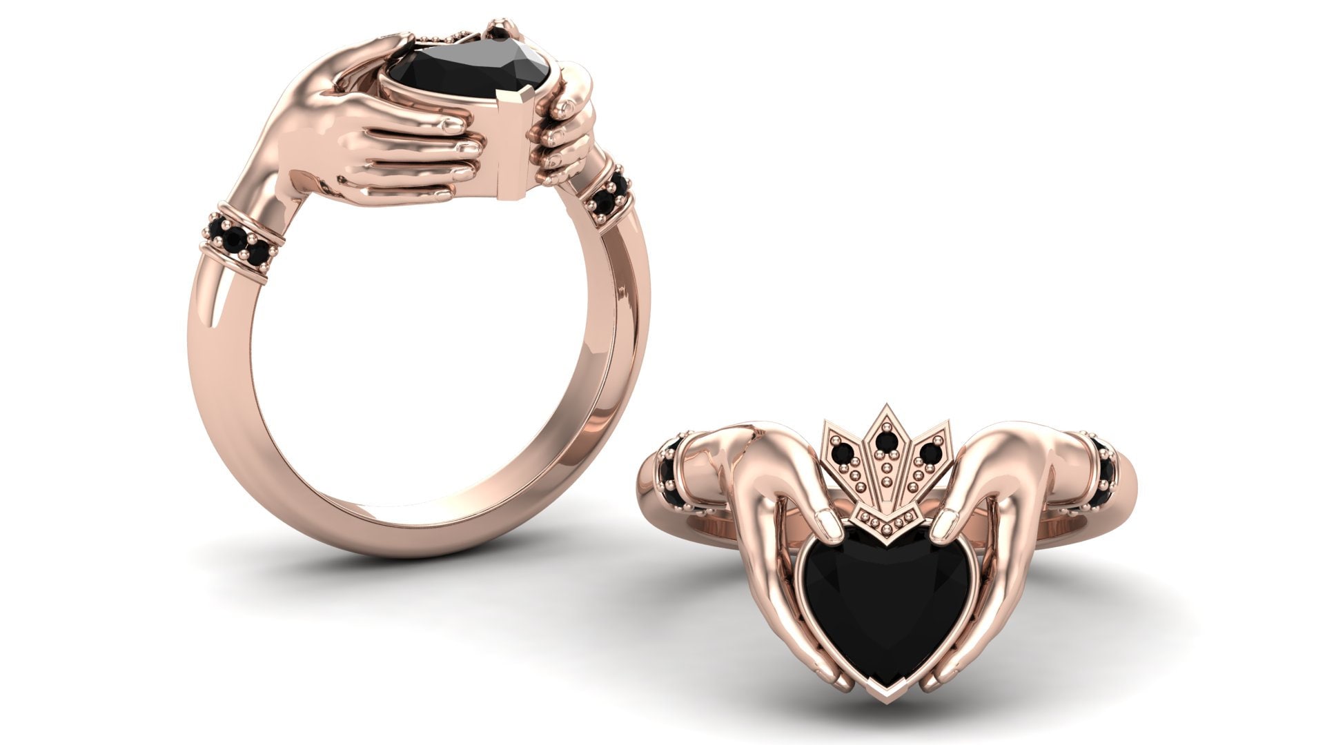 Natural Black Onyx Claddagh Ring Claddagh Engagement Ring For Women...