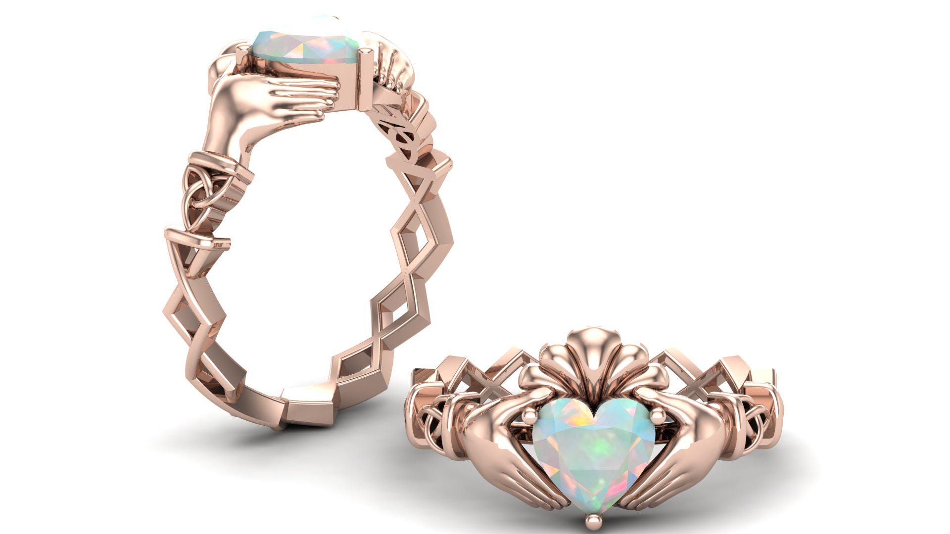 14k Gold Claddagh Ring For Women Claddagh Opal Ring Gold Wedding En...