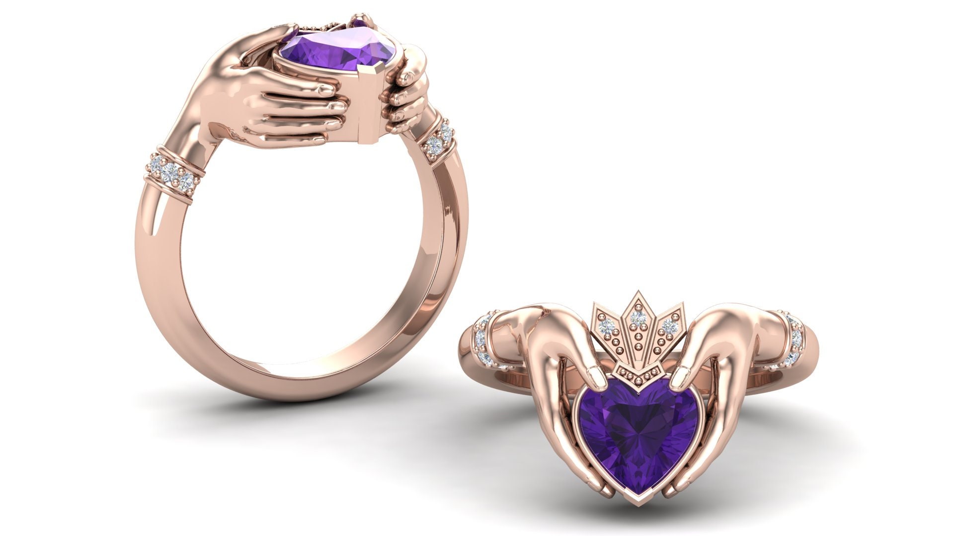 Heart Shaped Amethyst Claddagh Ring Vintage Claddagh Engagement Rin...
