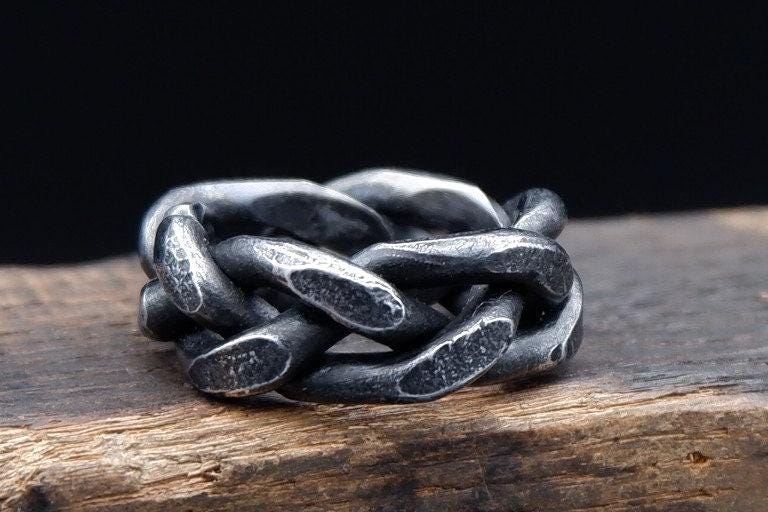 Iron ring, Hand forged braided men's or women's ring, Pagan ring, C...