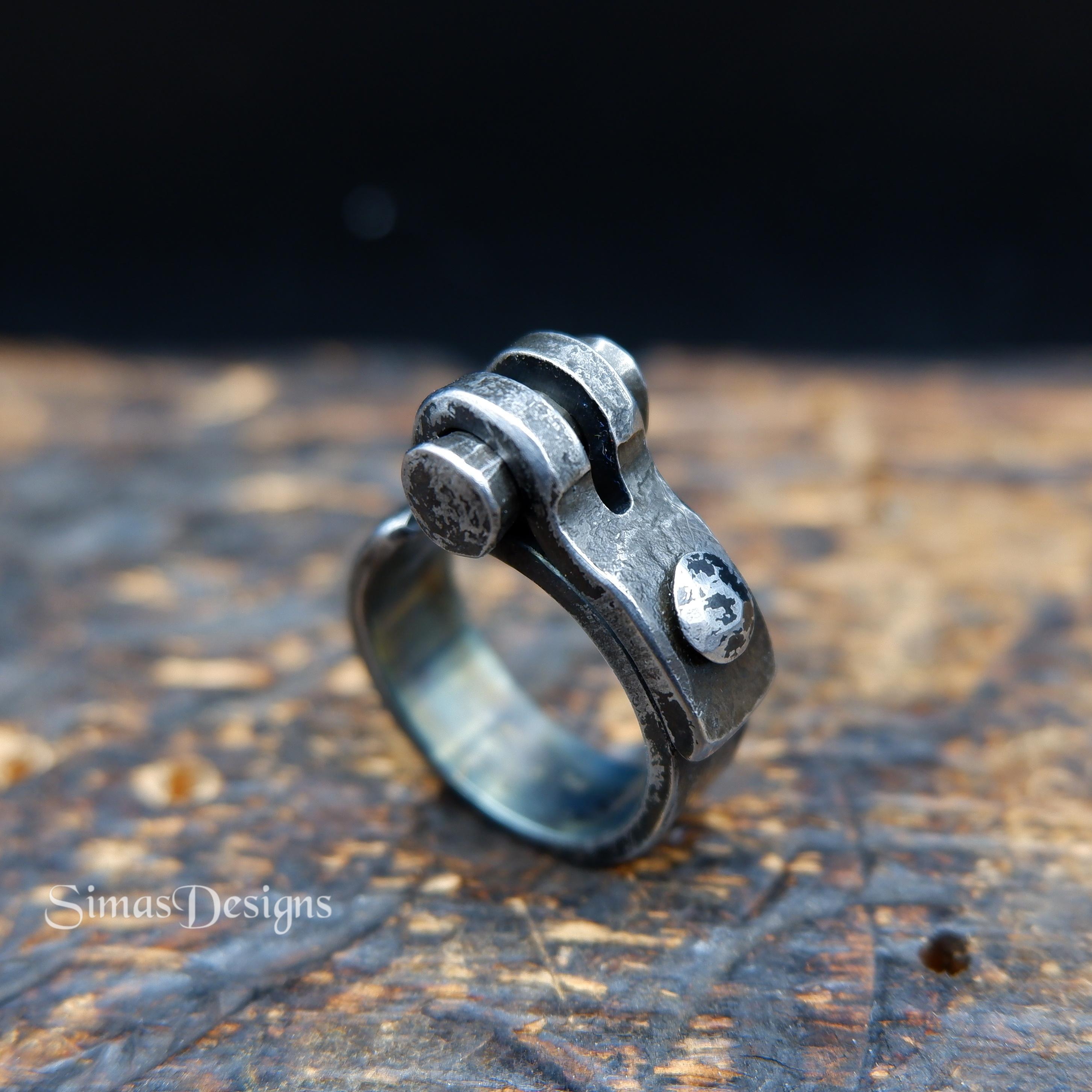 A hand forged industrial design iron ring can become a unique, nice piece of your style or an exclus...