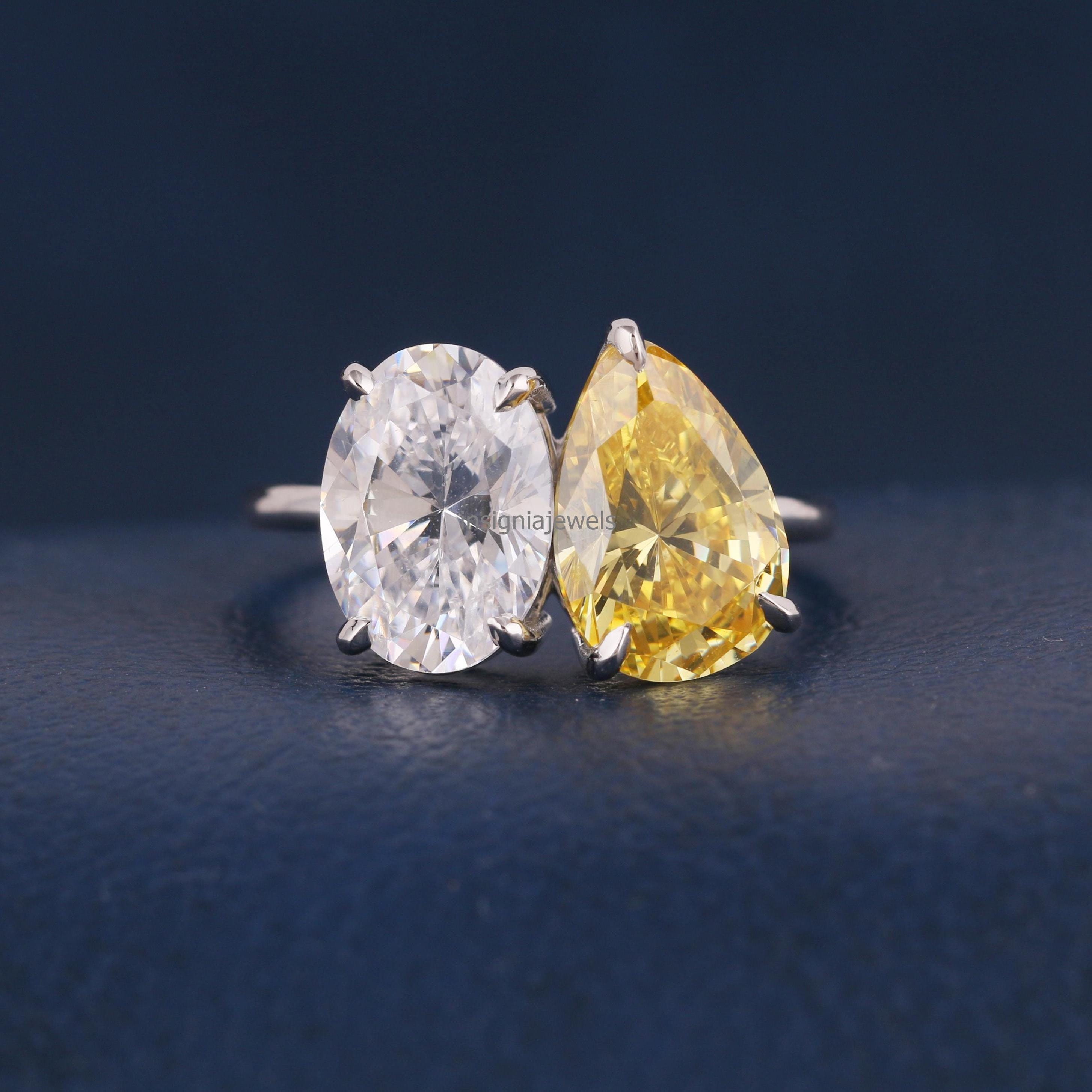 1.5CT Vivid Yellow Colored Pear Cut Lab Grown Diamond Engagement Ring, Fancy Toi Et Moi Lab Created ...