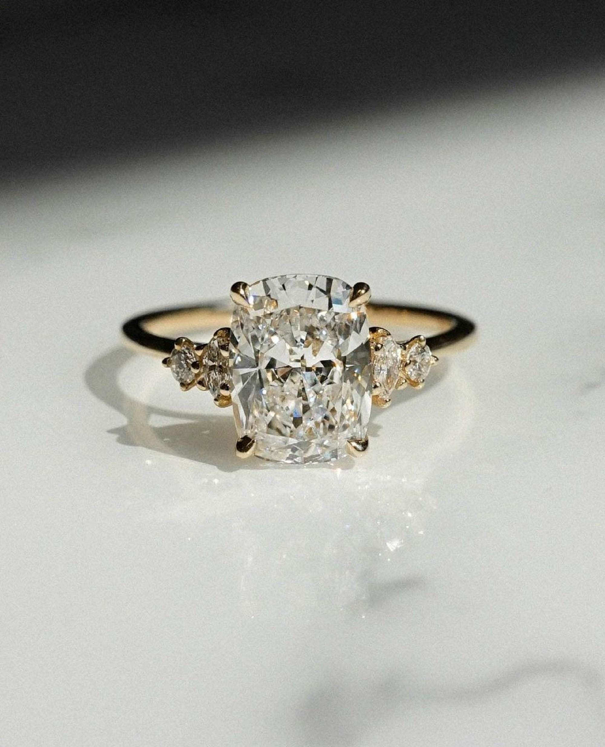 Elongated Cushion Cut Engagement Rings Moissanite Cushion Cut Rings...