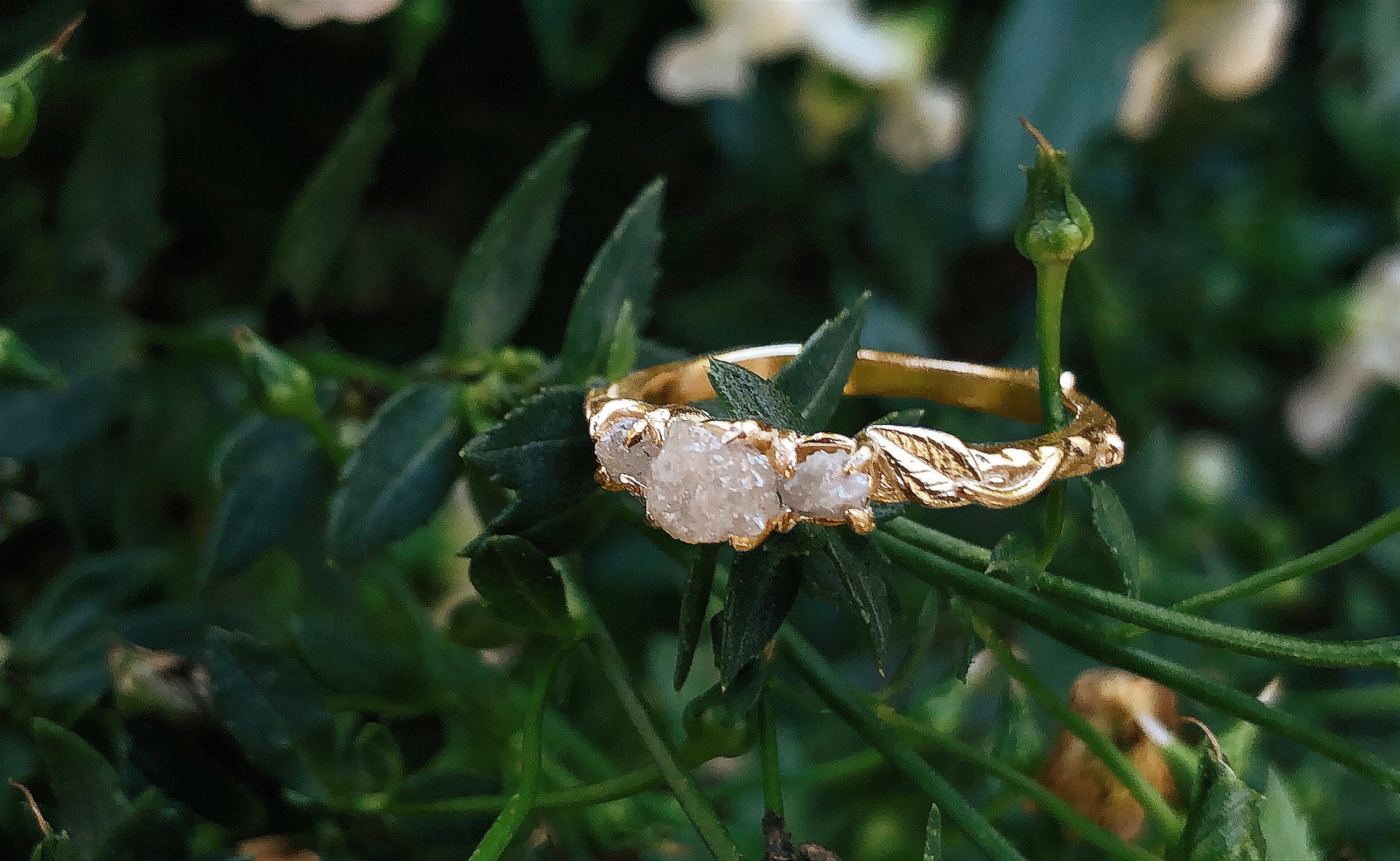 Rough Diamond 14K Gold Ring, Raw Diamond Engagement Rings, Triple R...