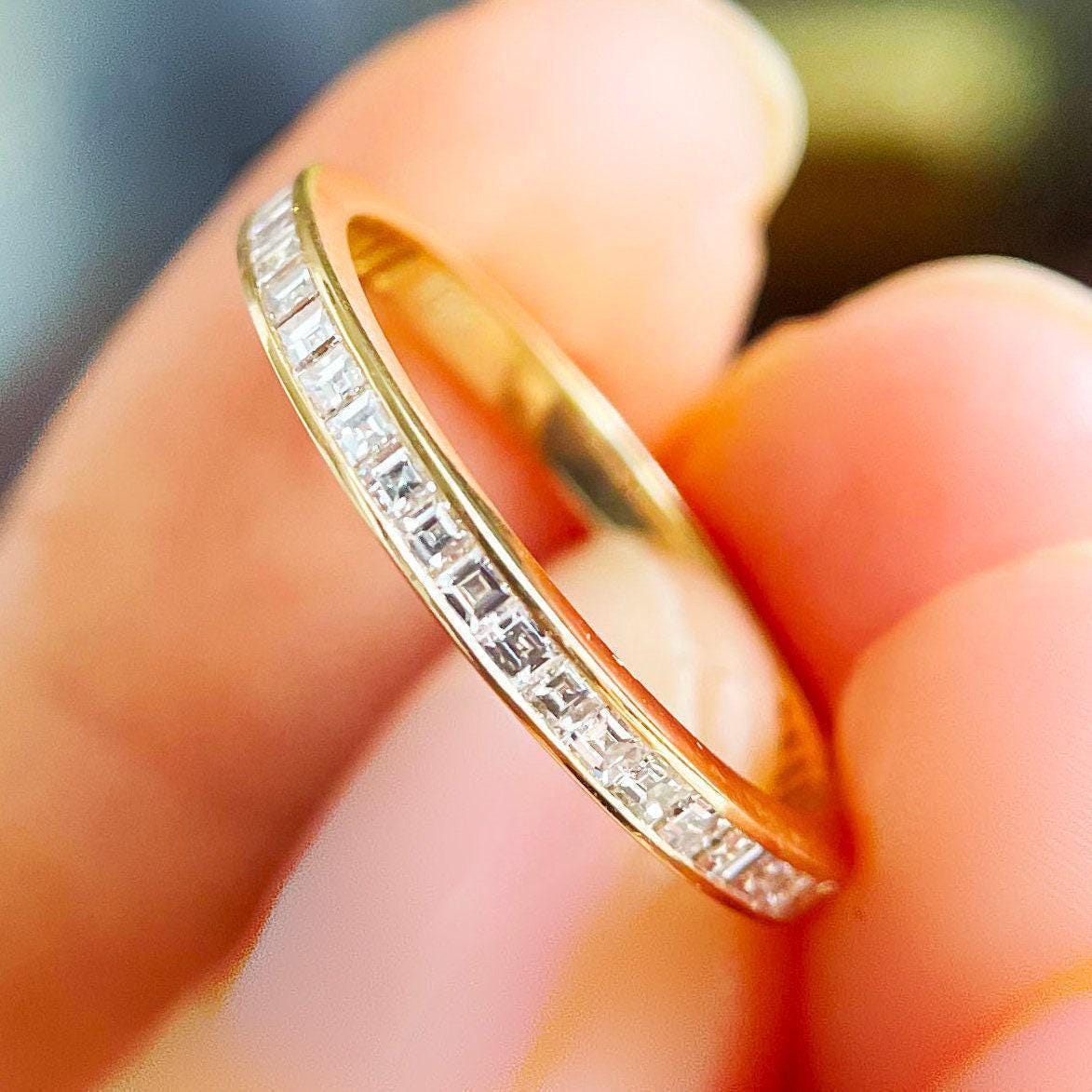 Carre Cut Diamond Band 2mm . Carre Cut Diamond Ring . 14k 18k Gold ...