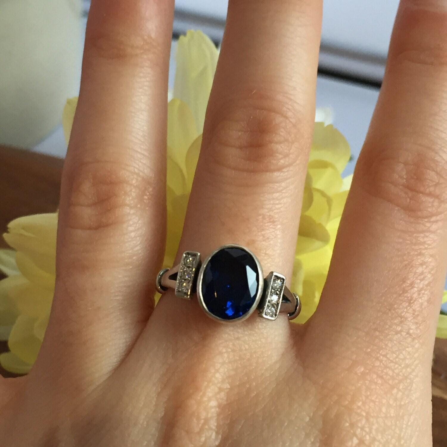 Dainty Vintage Ring set with a Created Sapphire in a flawless diamond cut, clarity & deep blue c...