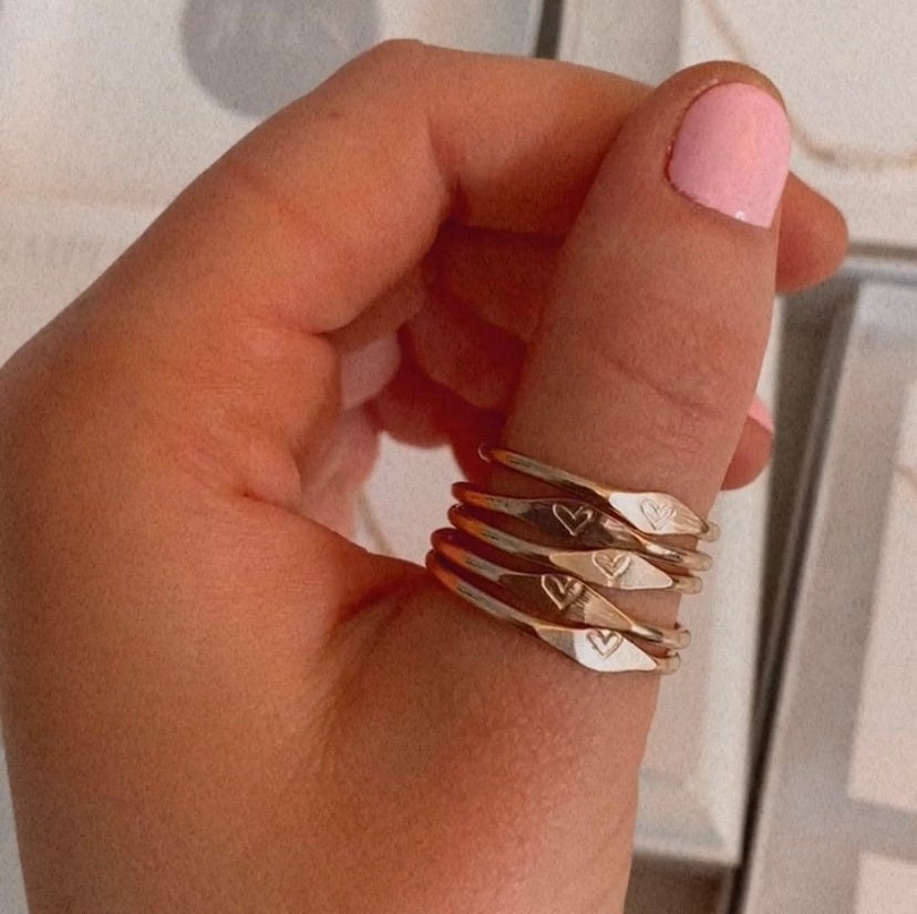 Stamped Heart Ring, Custom Rings, Gold Heart Ring, Dainty Unique Ri...