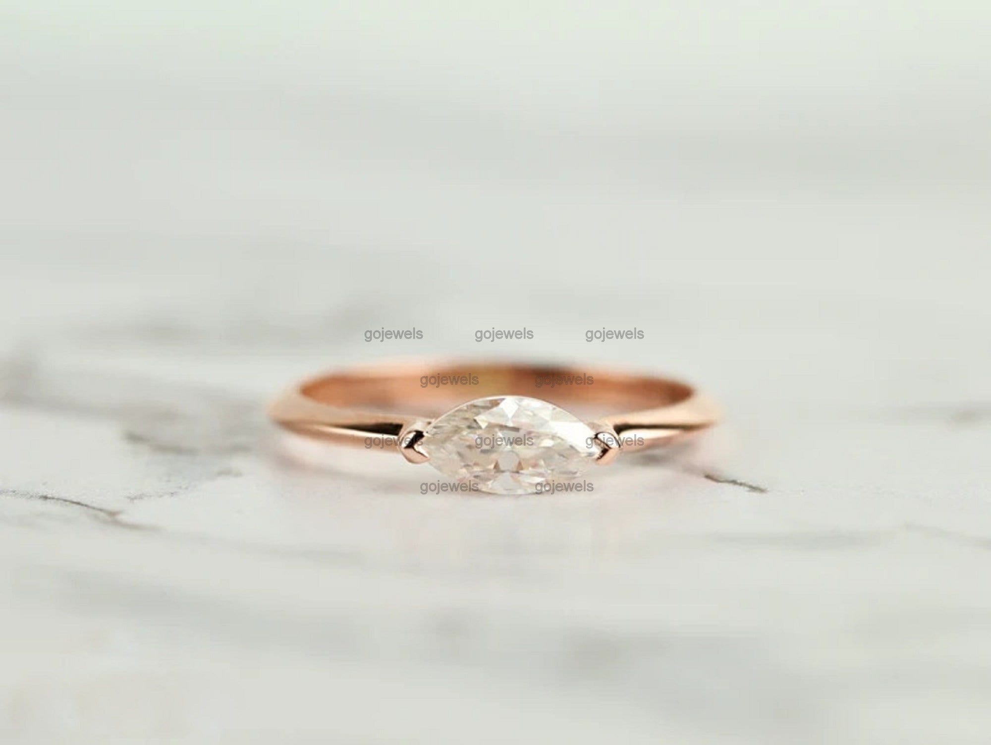 East West Marquise Ring, 14K Rose Gold East West Marquise Moissanit...