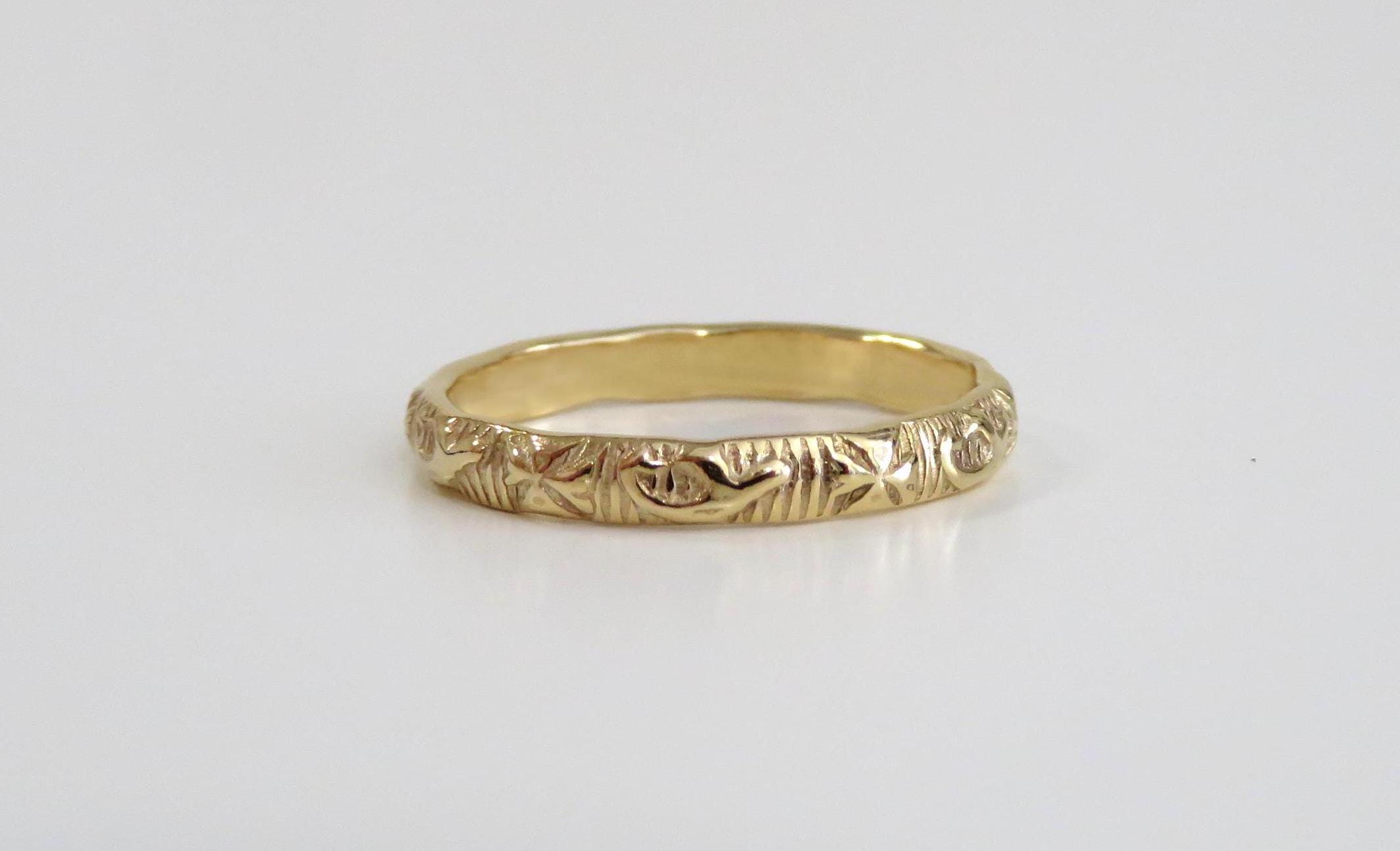 Antique Wedding Ring, Unisex 14K Gold Band, Vintage Wedding Ring, Pattern Band, Engraved Ring, Flora...