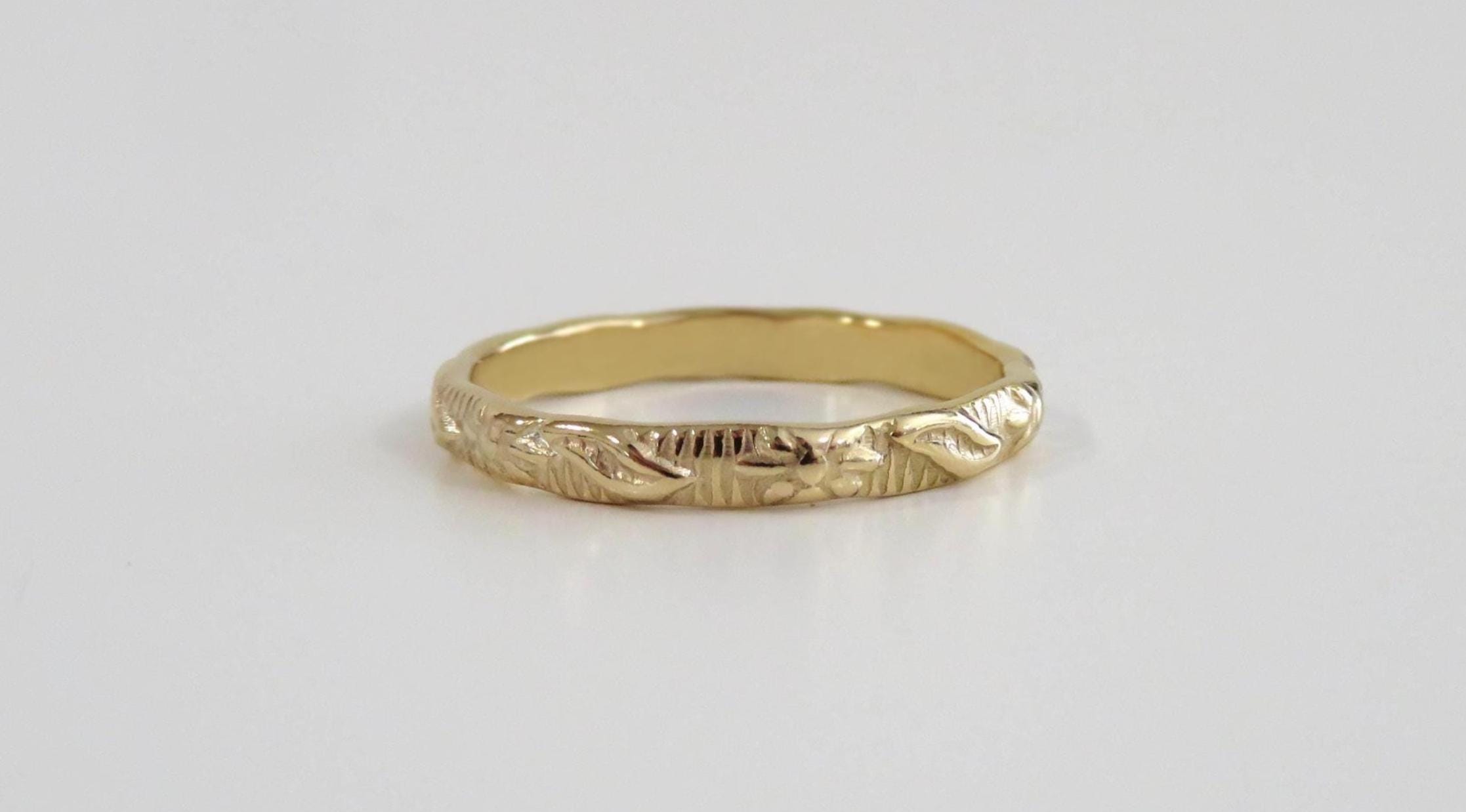 "Antique Wedding Unisex Gold Band, Vintage Wedding Floral Pattern Engraved Band, Victorian Gold...