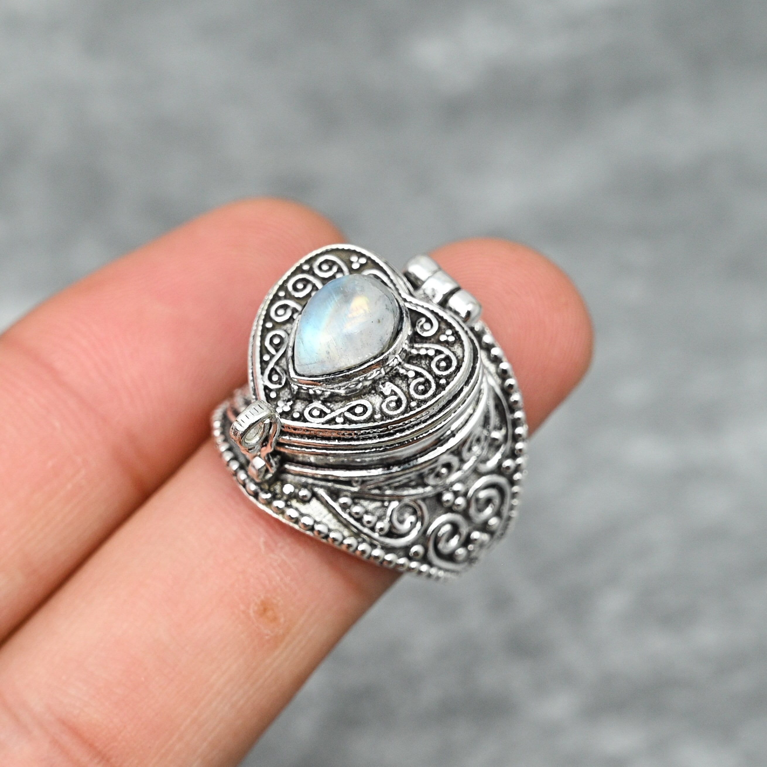 "Moonstone Pill Box Ring Adjustable Ring Moonstone Gemstone Ring Message Box Ring 925 Sterling ...