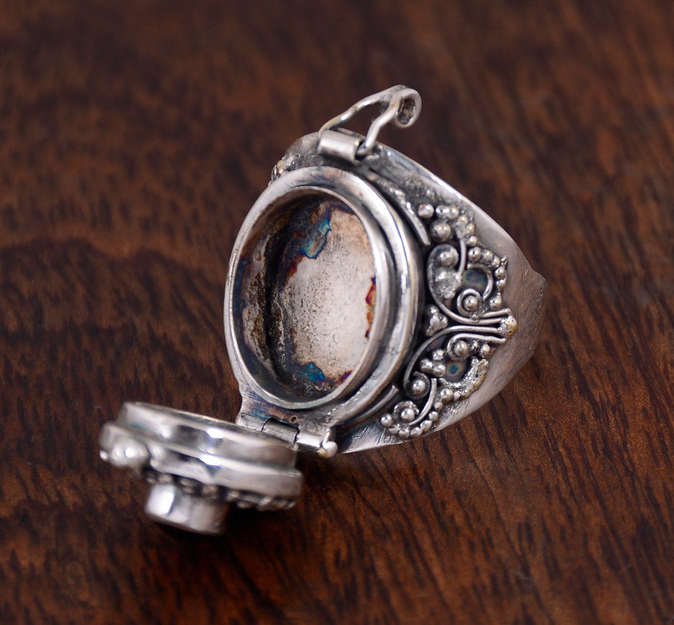 Poison Ring, Secret Box Ring, Garnet Box Ring, 925 Sterling Silver ...