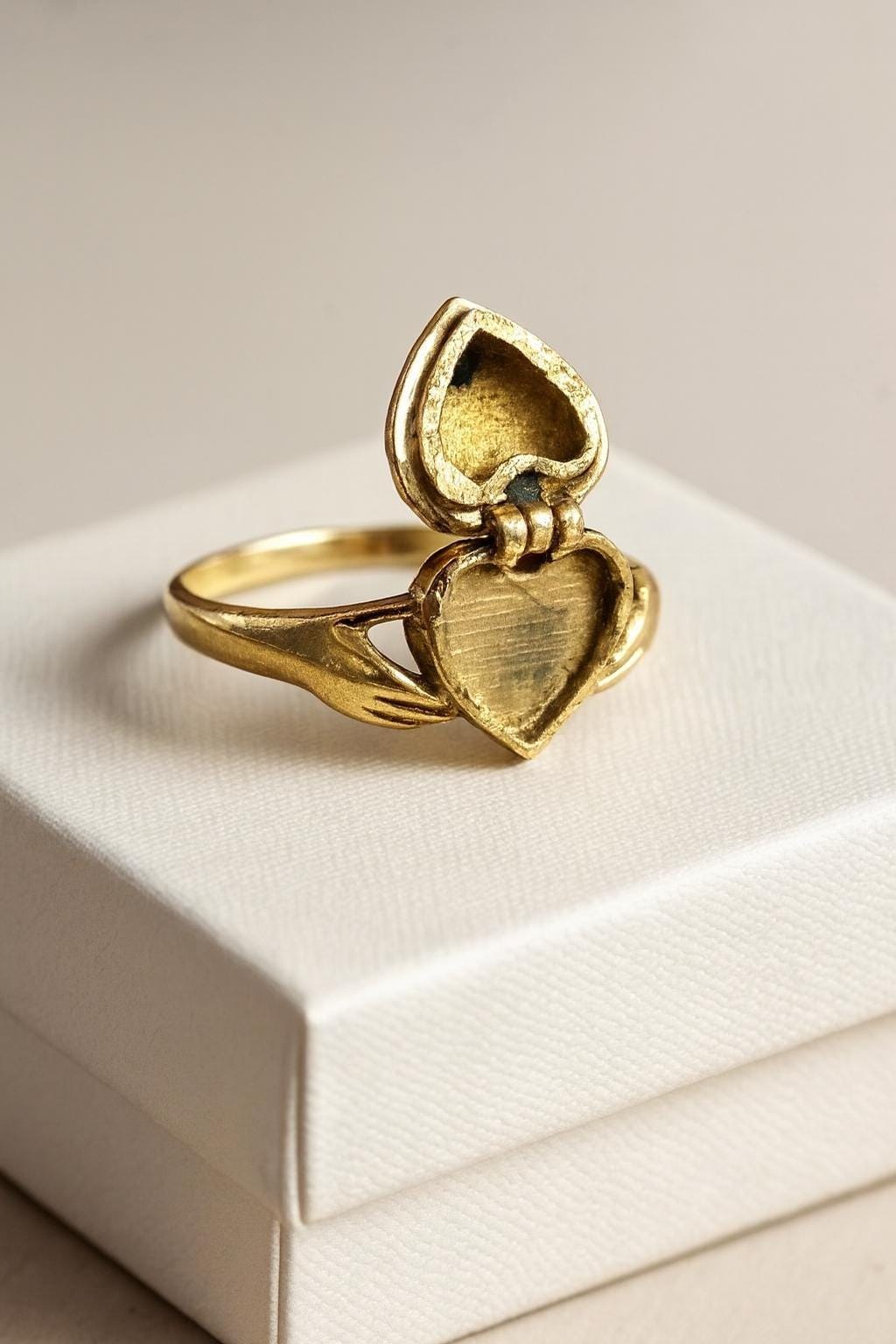 Heart Poison Ring, Couple Ring, Statement Box Ring, Locker Ring, Pu...