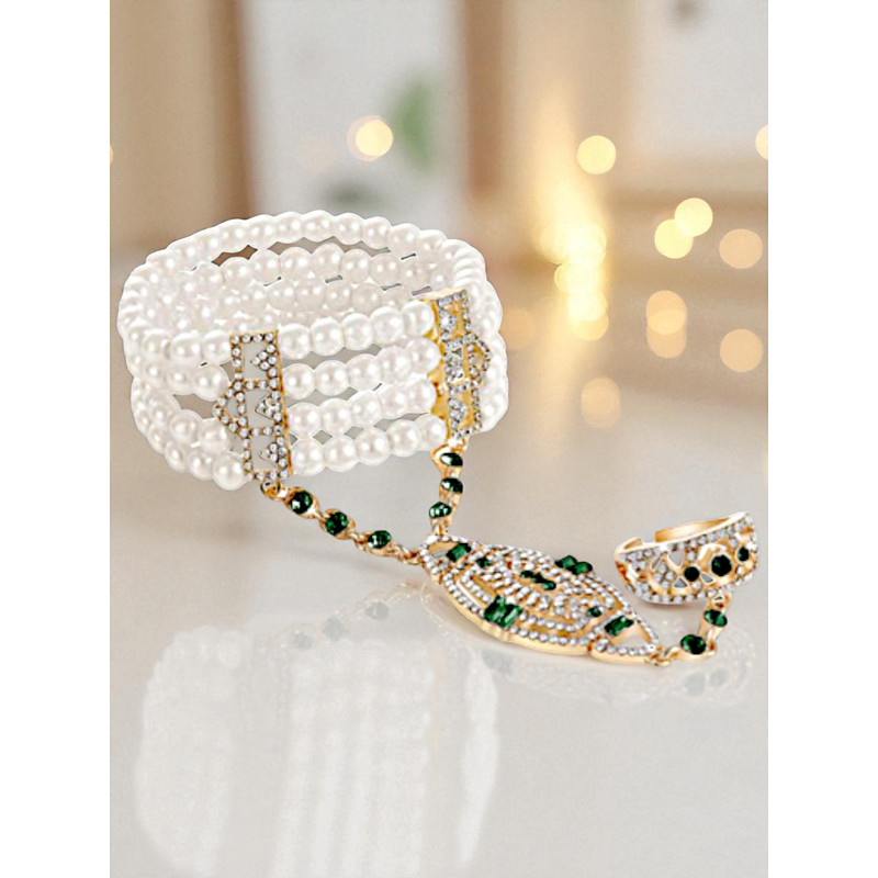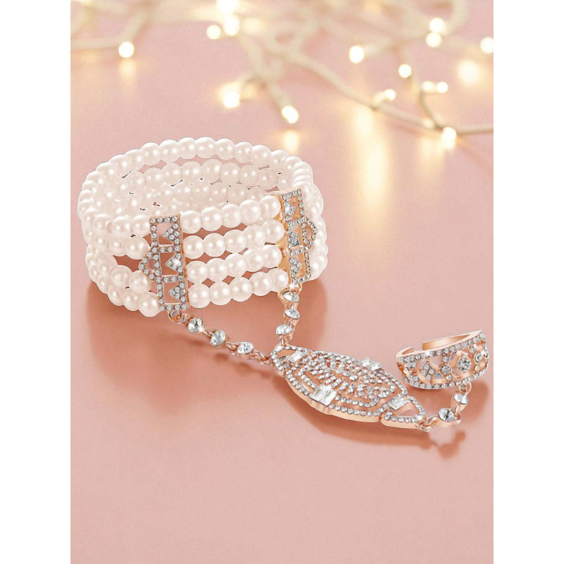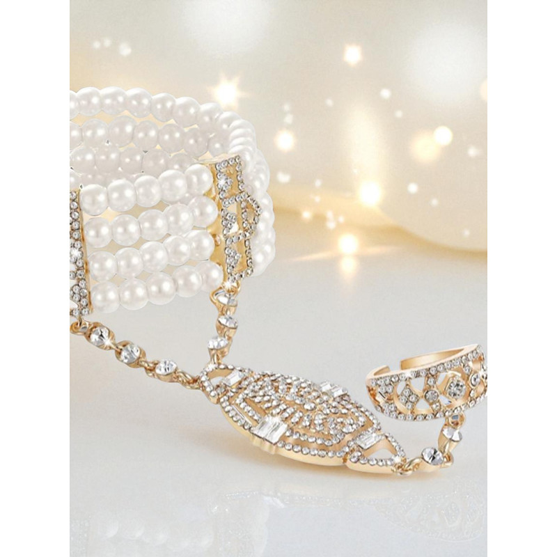 Women's 1920s Pearl Hand Chain Bracelet Ring - Art Deco Flapper Sty...