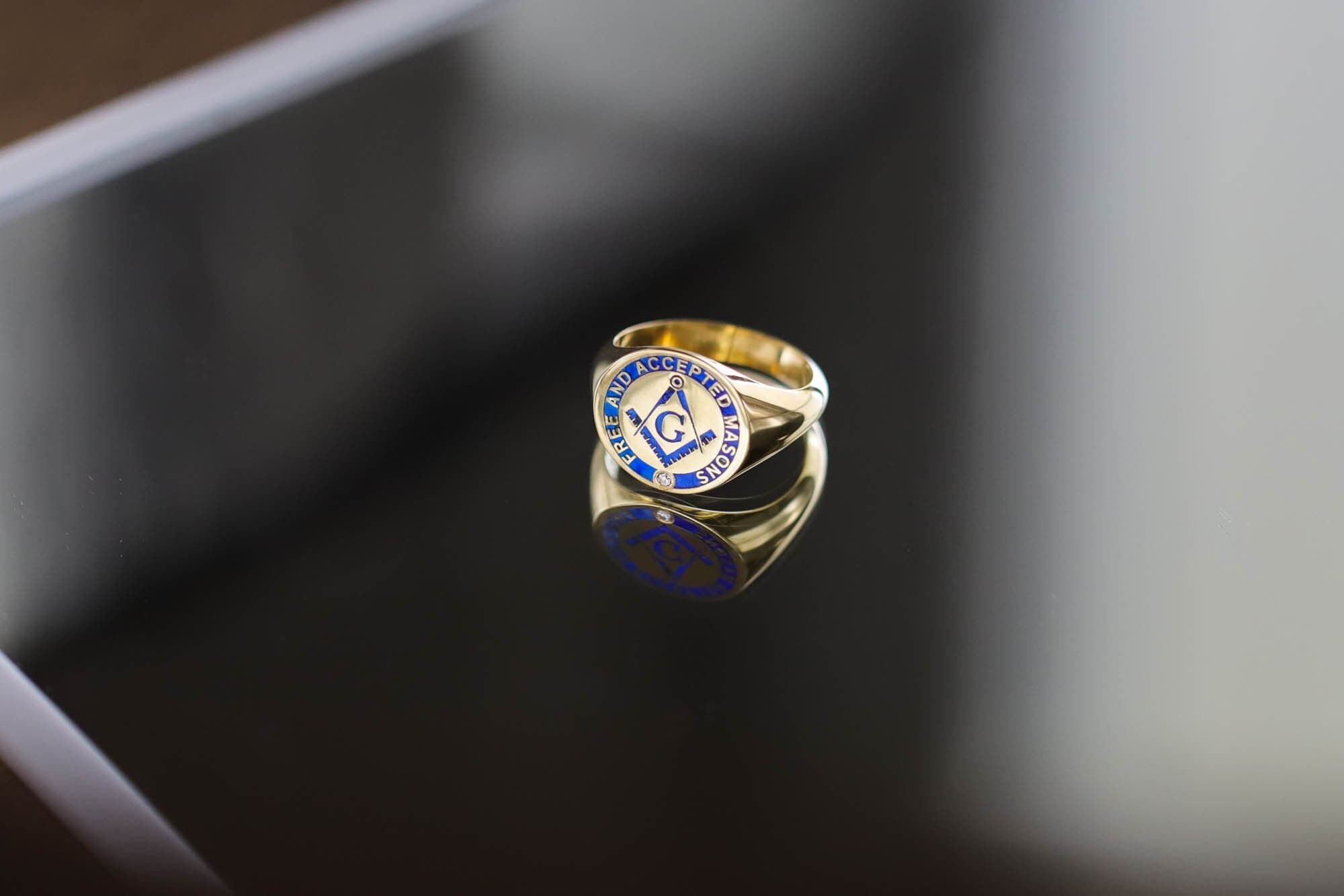 Gold Masonic Rings, Blue Enamel Masonic Ring, Freemason Ring, Mason...