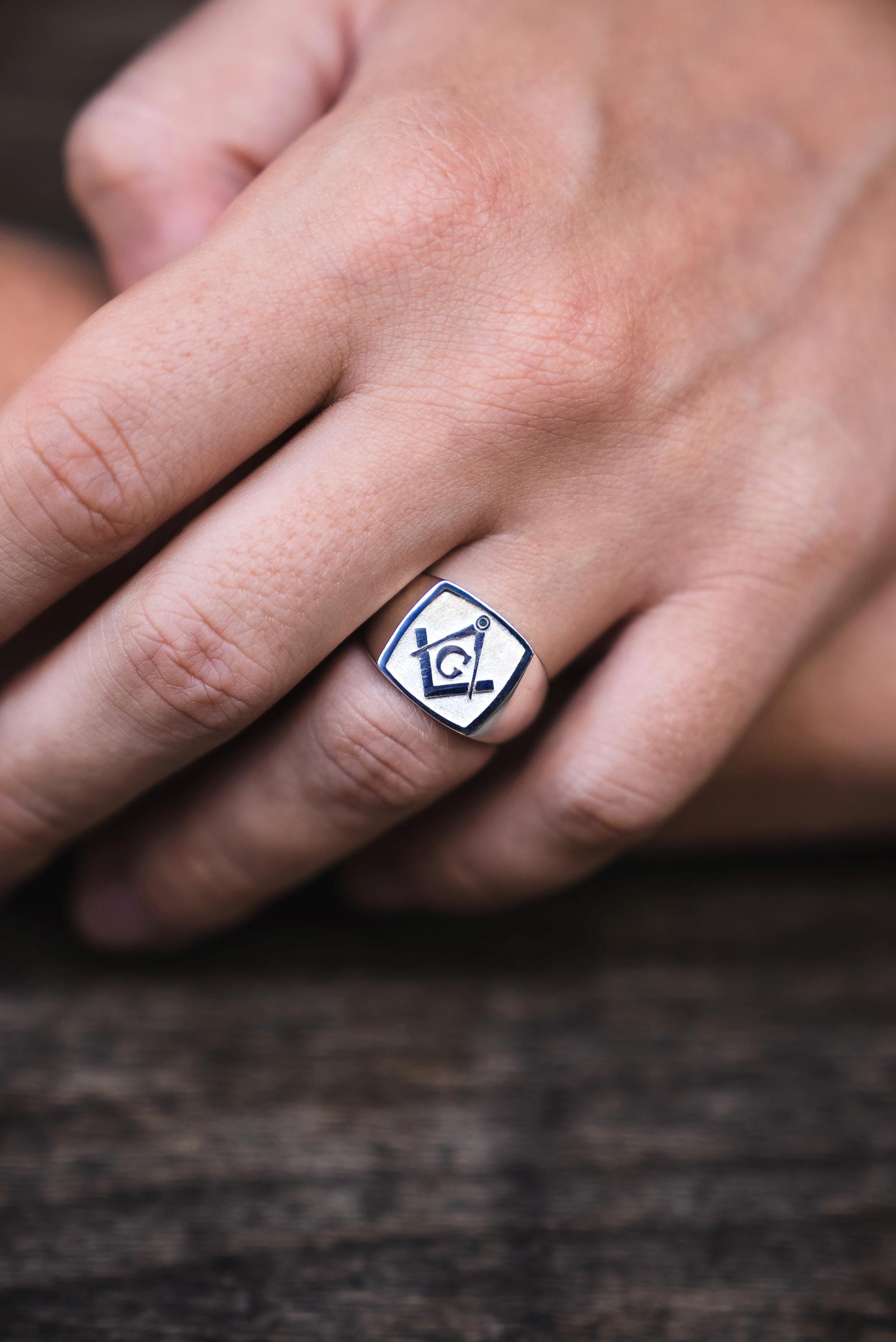 Masonic Mens Ring, Masonic Ring, Silver Masonic Ring, Masonic Signe...