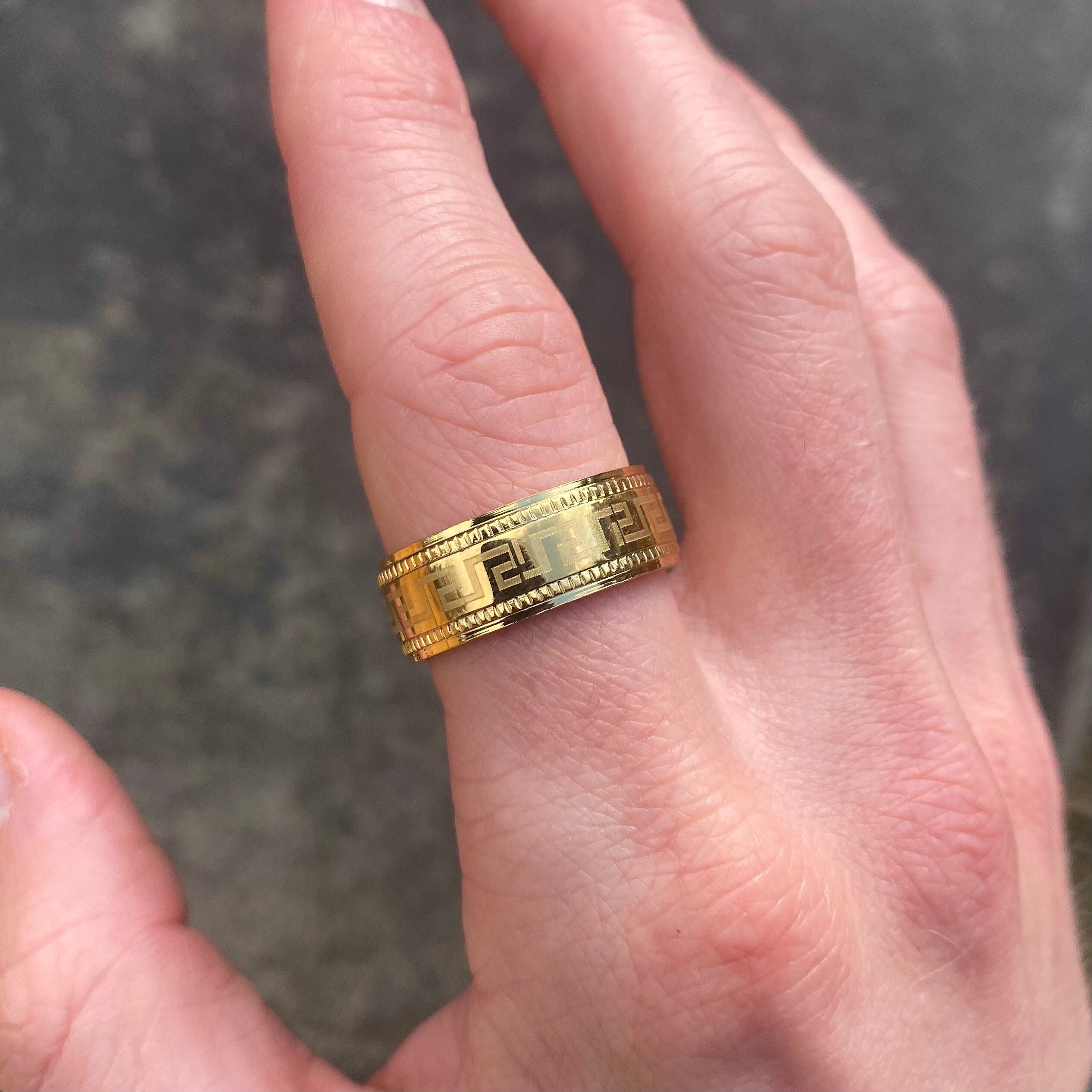 Mens Ring, Gold Pinky Ring Men, Greek Key Pattern Rings For Men, Me...
