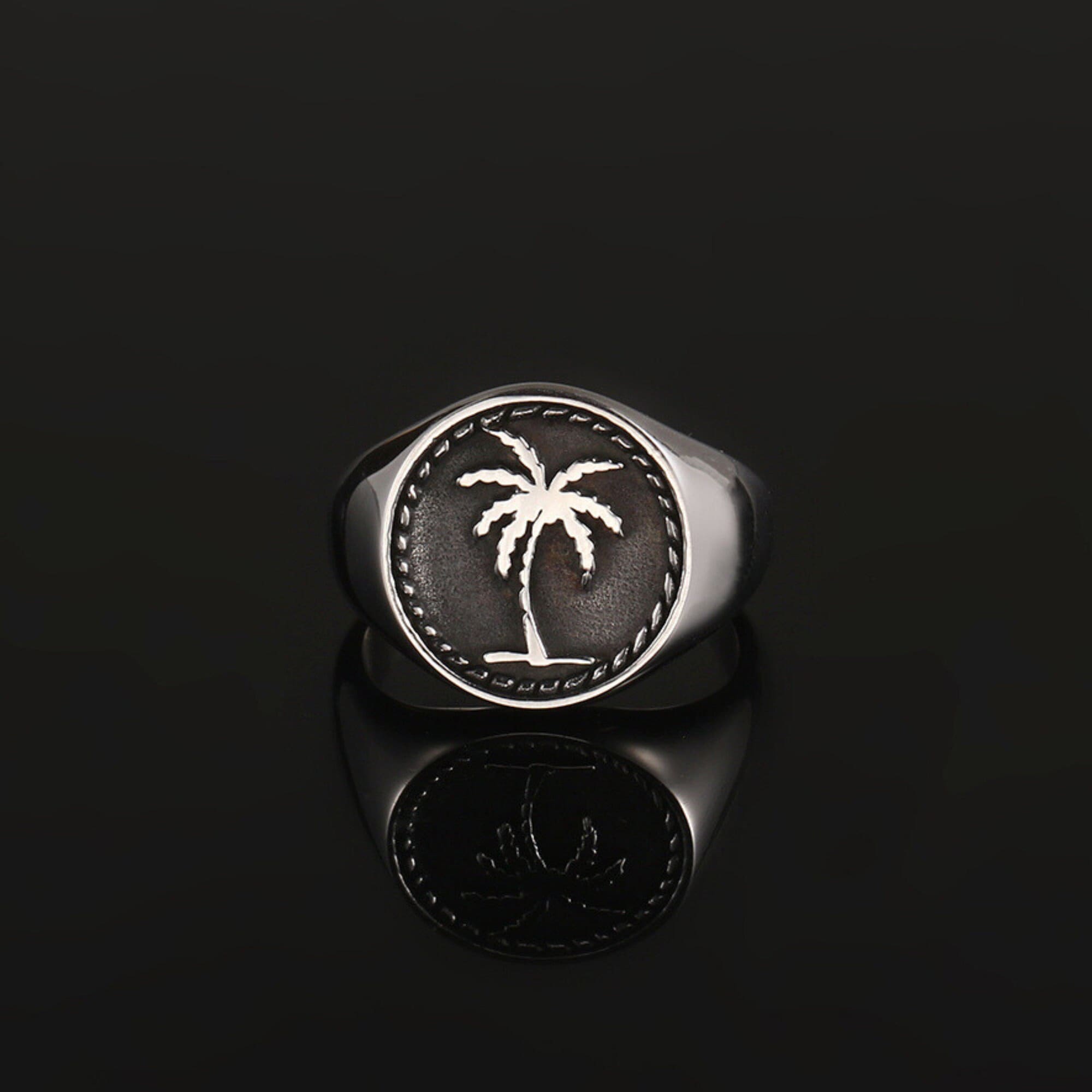 Mens Ring - Palm Tree Signet Ring - Signet Ring Men - Mens Pinky Ri...