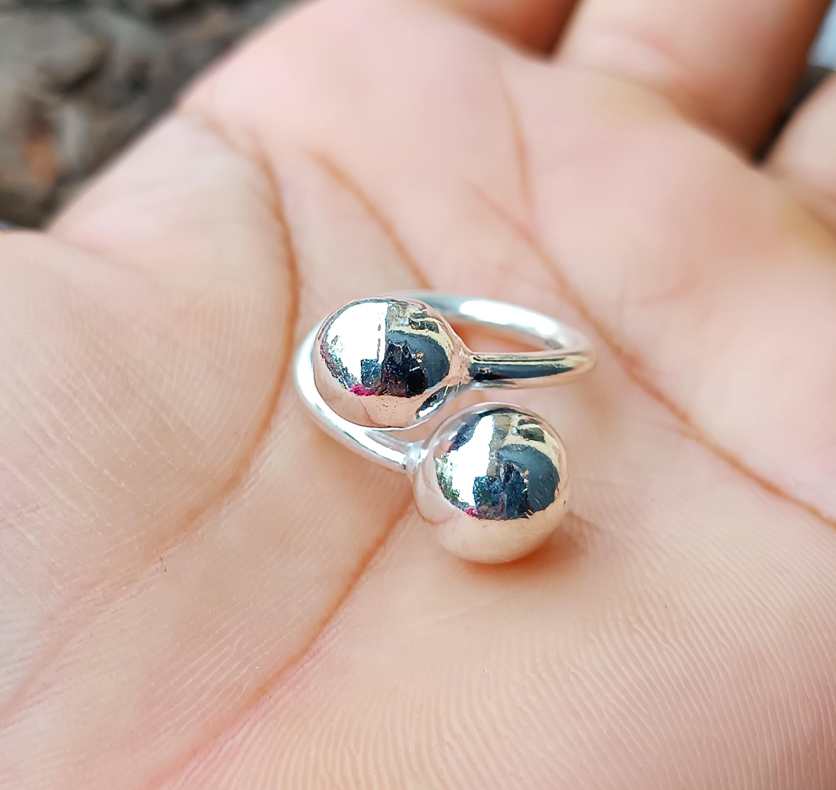 Double Ball Ring, Two Ball Ring, Ball Ring, Adjustable Ring, 925 St...