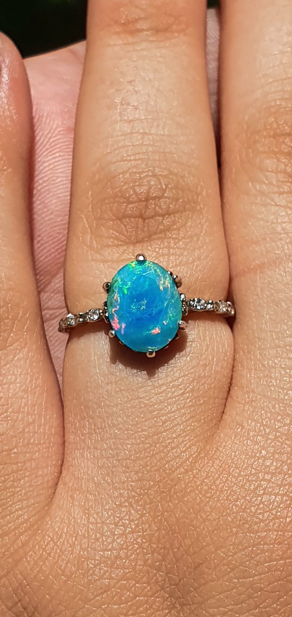 Blue Opal Ring 14k, Opal Engagement Ring 14k, Fire Opal Ring, Rainb...