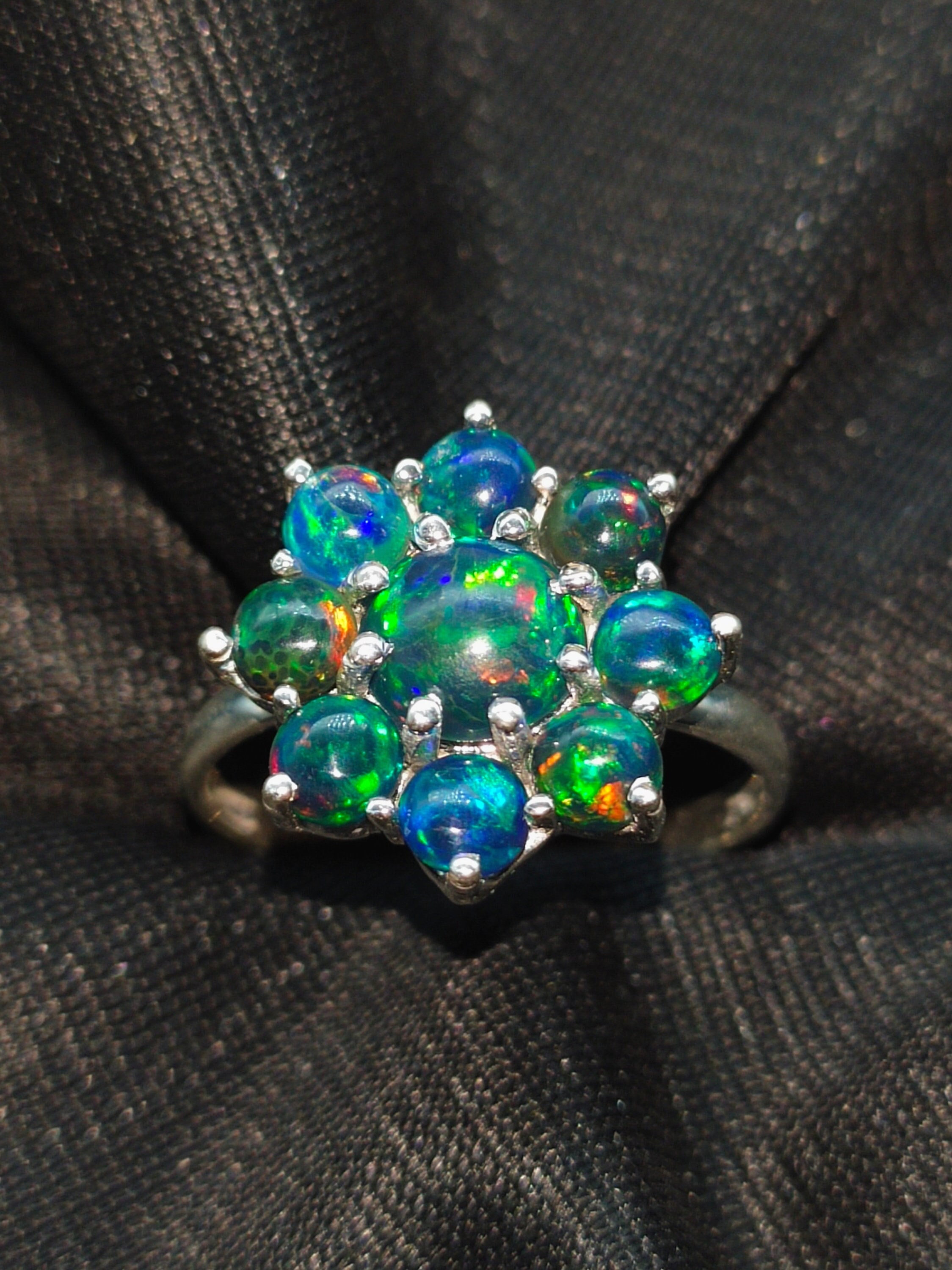 "This Black Flower Opal Ring is made in 925 Sterling Silver in the \"Silver\" option ...