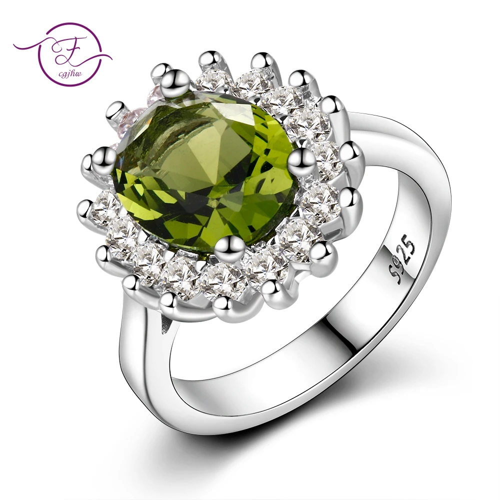 Natural Peridot Sterling Silver Rings 3.7 Carats Birthstone Romanti...