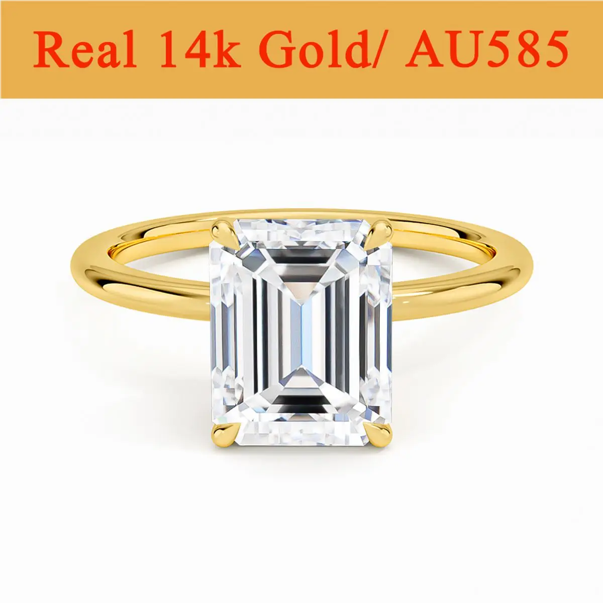 Emerald Cut 14K Gold Moissanite Ring Hollow 1 Carat 2 Carat 3 Carat White Lab Diamond Woman Engageme...