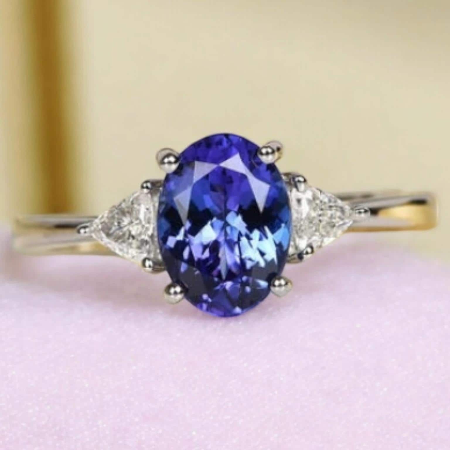 Sparkling with the Oval-shaped gemstones, this AAAA Tanzanite three stone ring is overflowing with t...