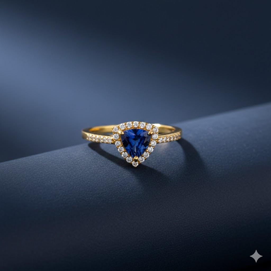 AAAA Tanzanite with Moissanite Halo Ring in 9K Solid Yellow Gold, T...
