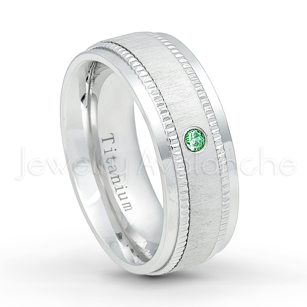 Emerald Titanium Ring: May Birthstone Wedding Band, Brushed Finish