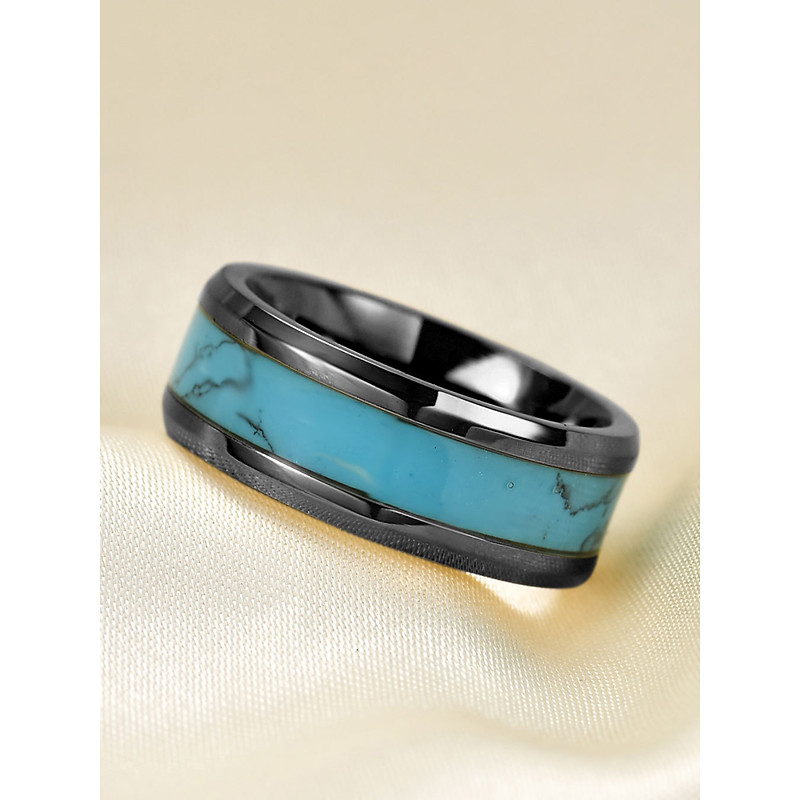 Men's Stainless Steel Blue Turquoise Inlay Ring, Polished Comfort F...
