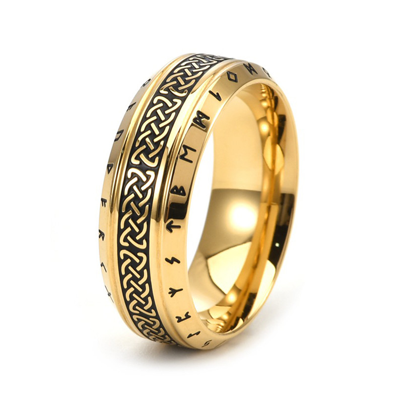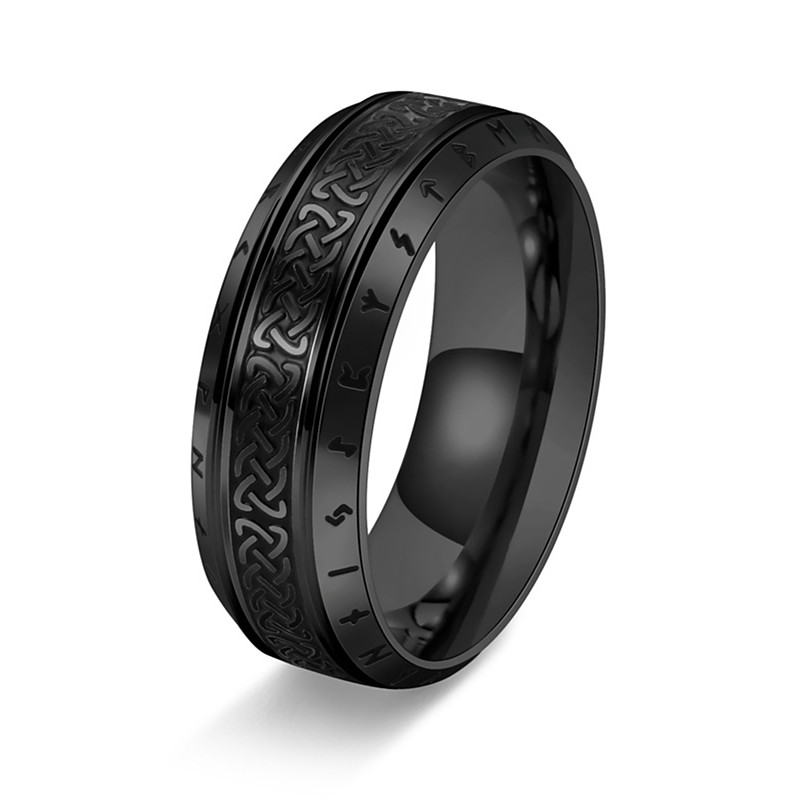 Men's Viking Stainless Steel Ring with Nordic Runes and Celtic Knot...