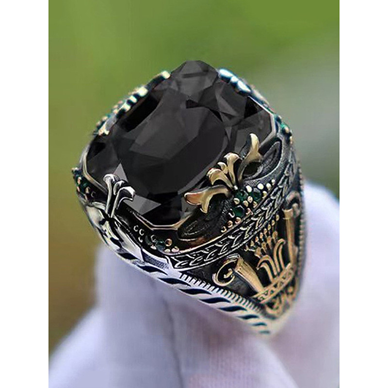 Men's Alloy Gemstone Ring, Vintage Gothic Statement Jewelry with La...