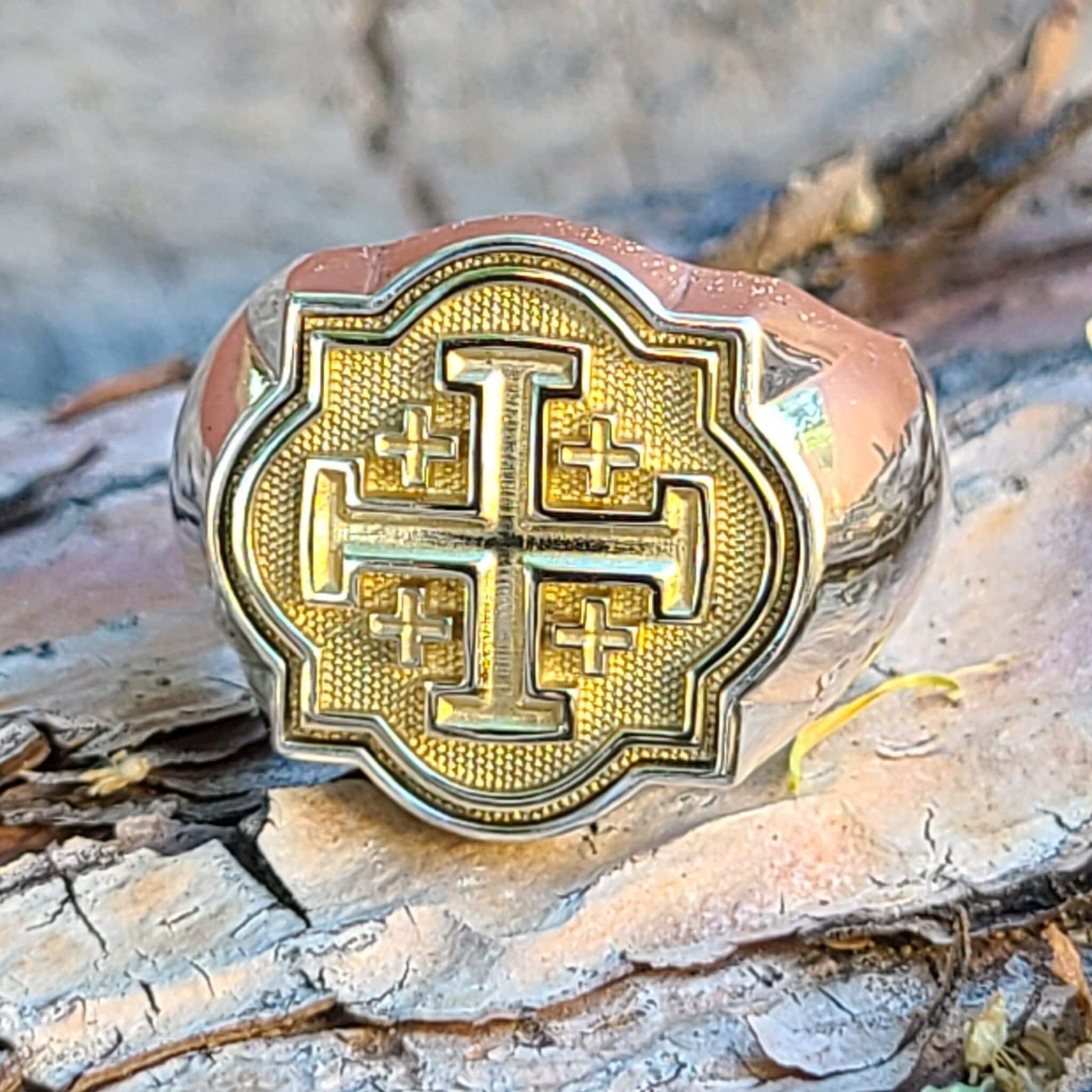 Jerusalem Cross Ring - Crusaders' Cross - Five-Fold Cross - Cross a...