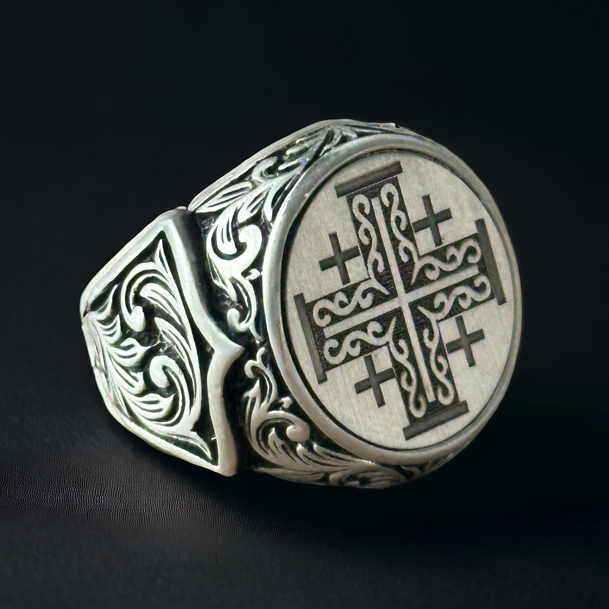 This ring was designed with the Jerusalem Cross or Crusaders' Cross symbol. The Jerusalem Cross has ...