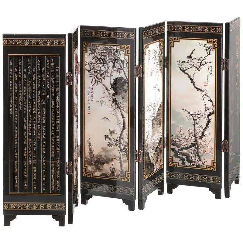 Mini Size Wooden Folding Screen Retro nament Bedroom Living Room De...