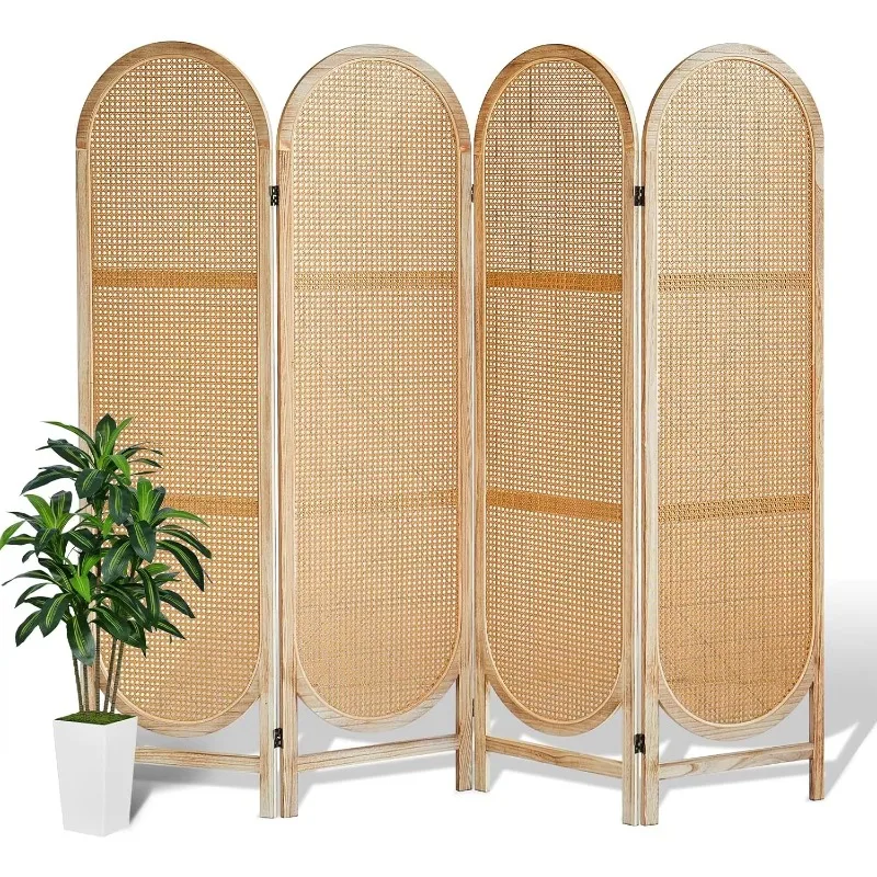 4 Panels Foldable Wooden Bamboo Screens Portable Wall Dividers for ...