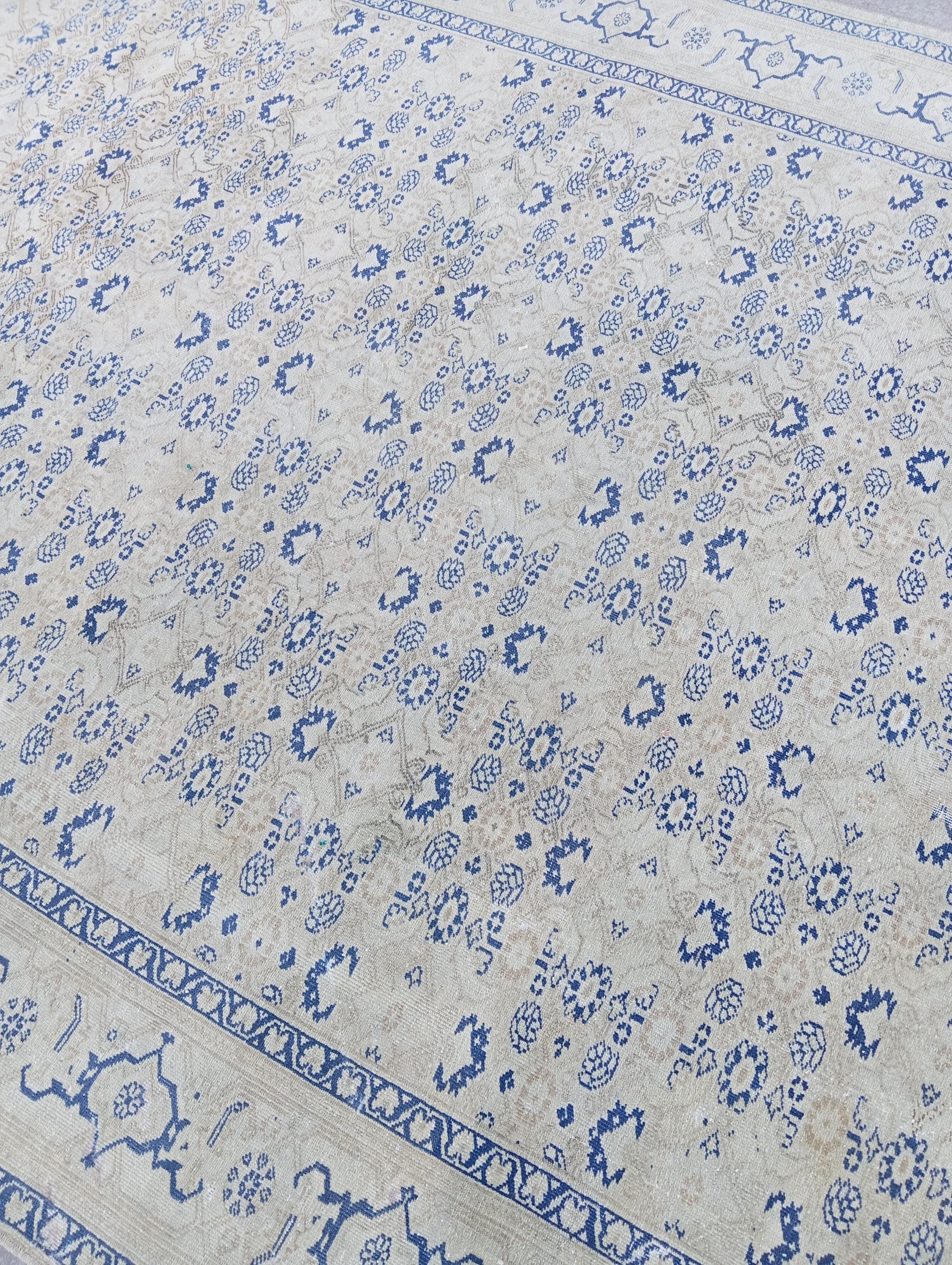 "Dimensions of this vintage rug: Size in feet: 6.5 x 9.3\" Origin: Turkey Age: Manufacture...