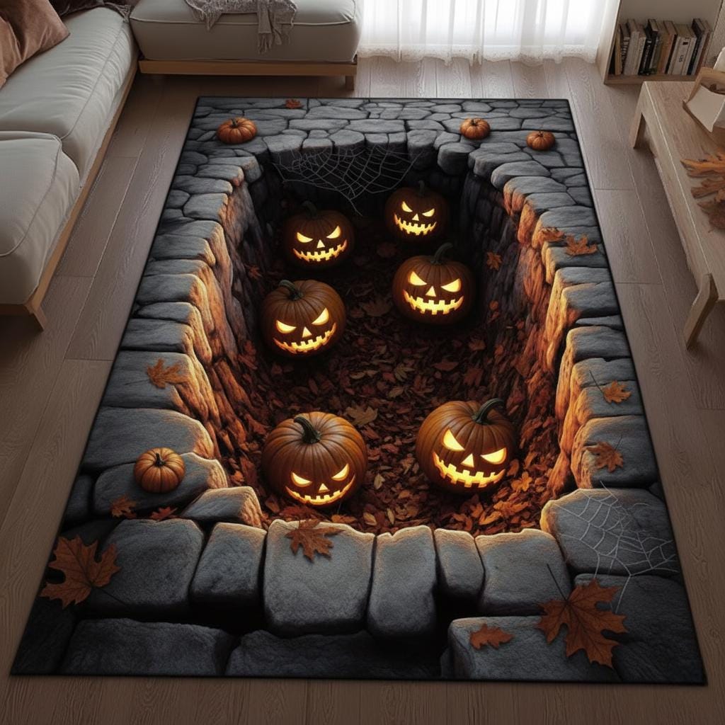Halloween-Themed Area Rug with Spooky Pumpkin Design, Halloween Are...
