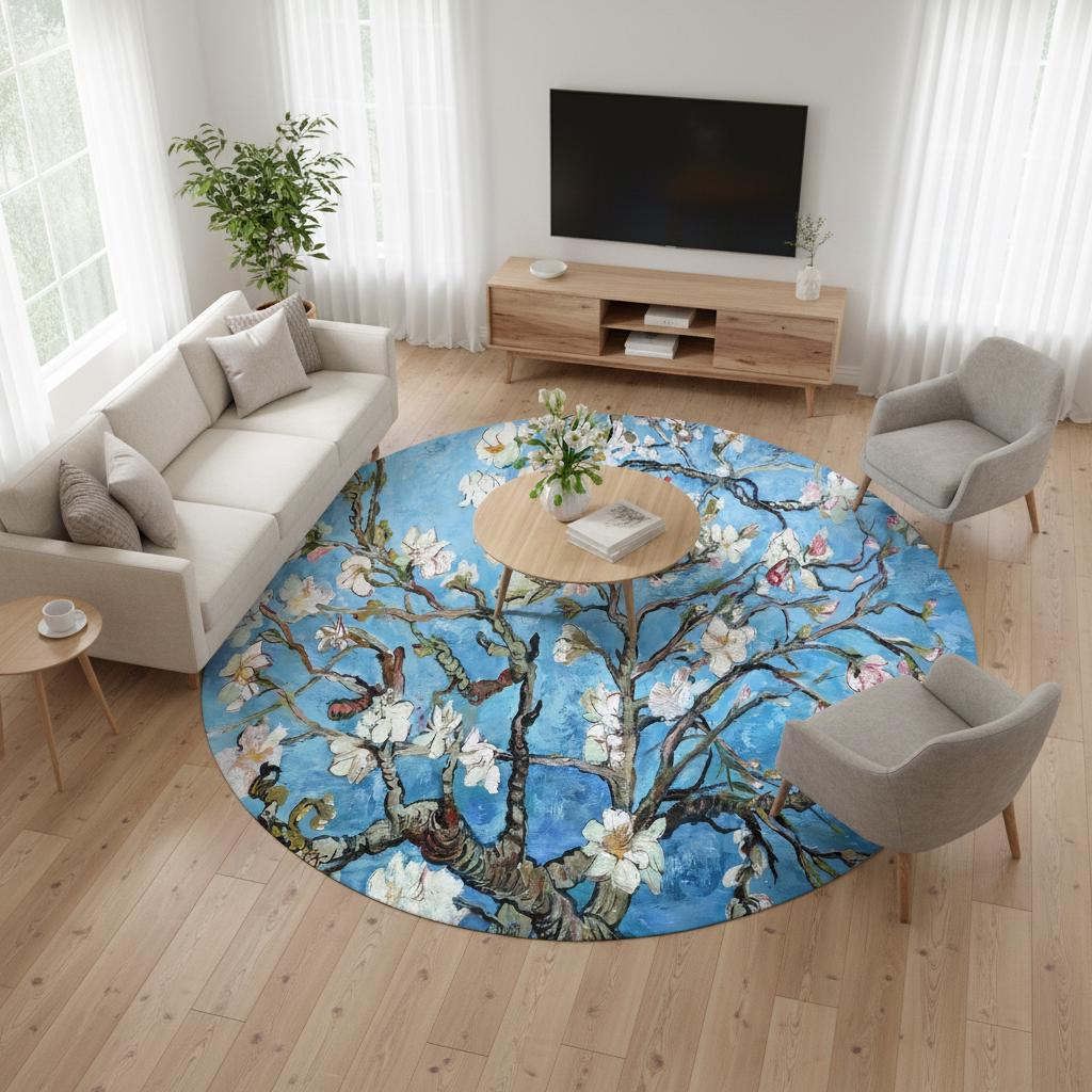 Vincent Van Gogh Round Rug,Van Gogh Almond Blossoms,Famous Paintings,Art Rug,Living Room Rug,Home De...
