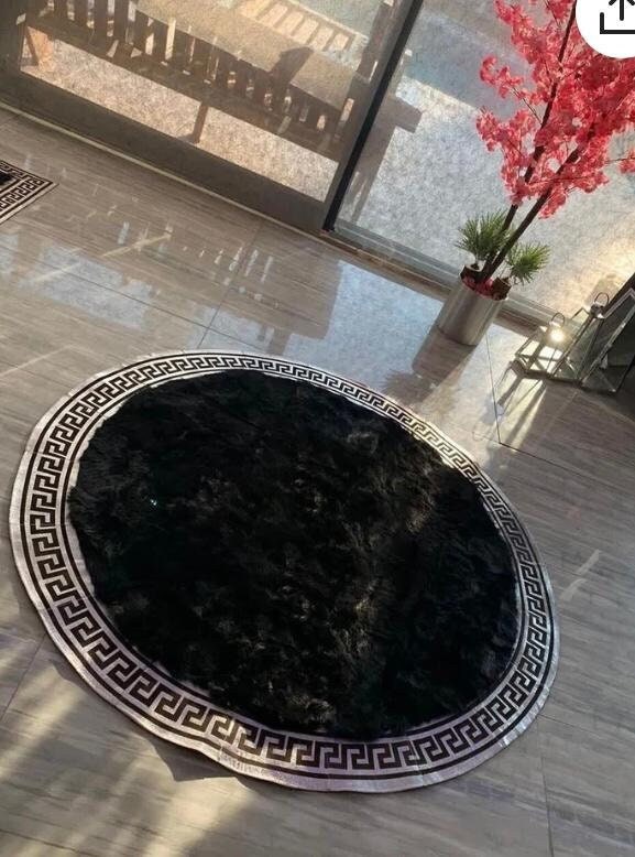 Black-Silver Sheepskin Round Rug, Handmade Fur Rug, Silver Leather ...