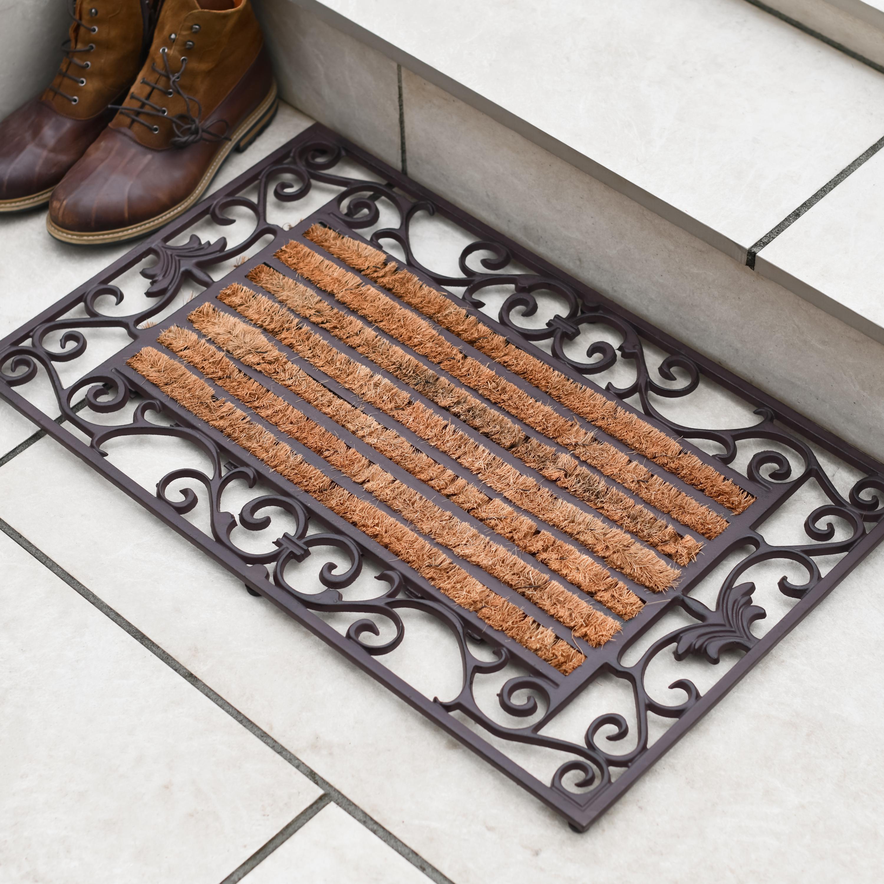 Cast Aluminum Rectangular Doormat: Ornate Scrollwork Entryway Mat