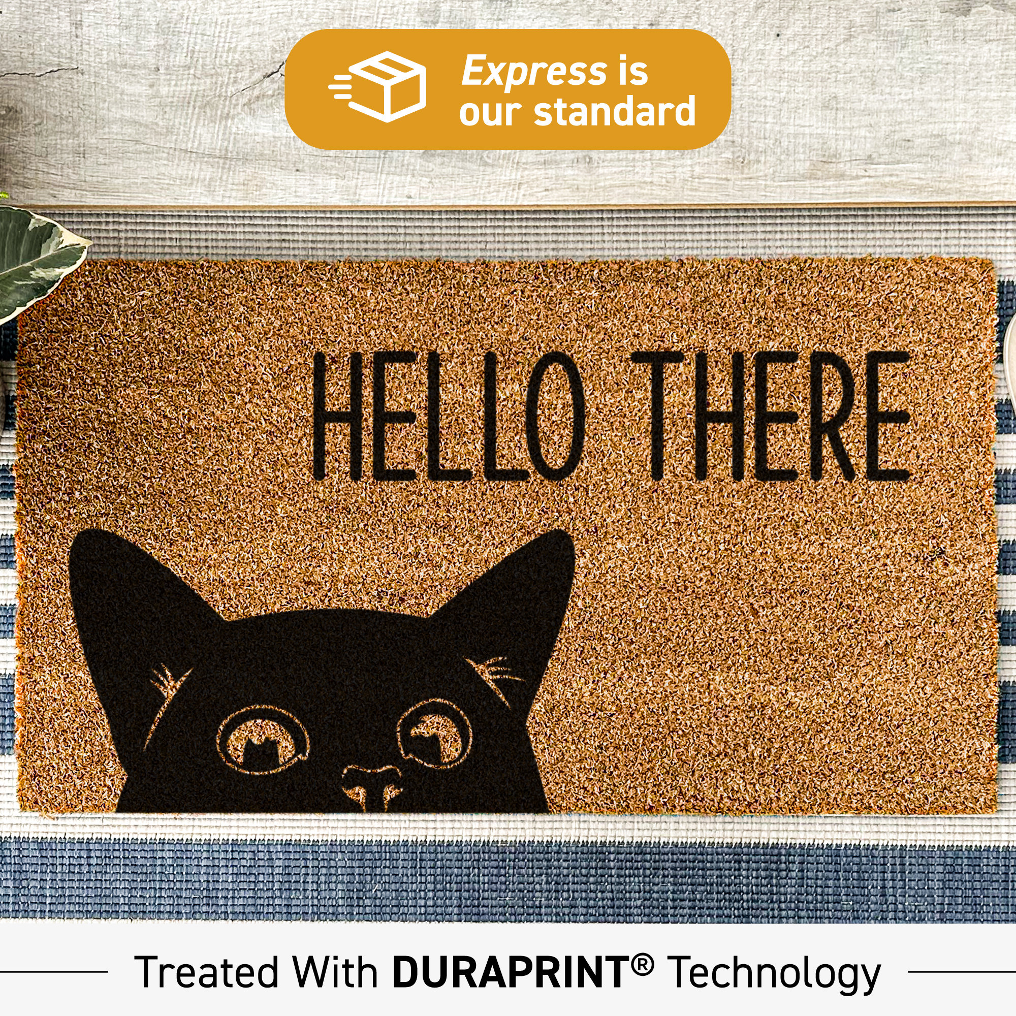 Custom Doormat, Black cat hello there doormat, cute cat peeking doo...